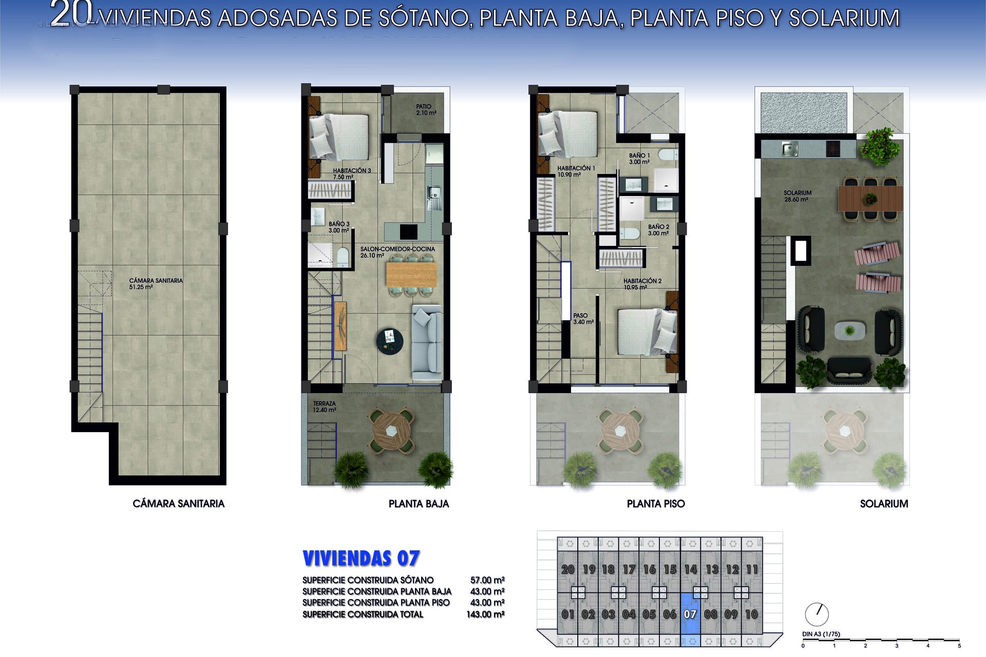 Los adosados en Dolores destacan por sus espacios exteriores cuidadosamente diseñados. Cada vivienda incluye una terraza, un lugar perfecto para disfrutar del clima mediterráneo, ya sea para relajarse al aire libre, organizar cenas con amigos o simplemente disfrutar de un momento de tranquilidad. Además, las propiedades cuentan con un solárium, ofreciendo un espacio adicional para tomar el sol o crear un jardín en altura. Estos elementos exteriores no solo amplían el espacio habitable, sino que también añaden un valor significativo al estilo de vida, permitiendo a los residentes disfrutar de la vida al aire libre desde la comodidad de su hogar.