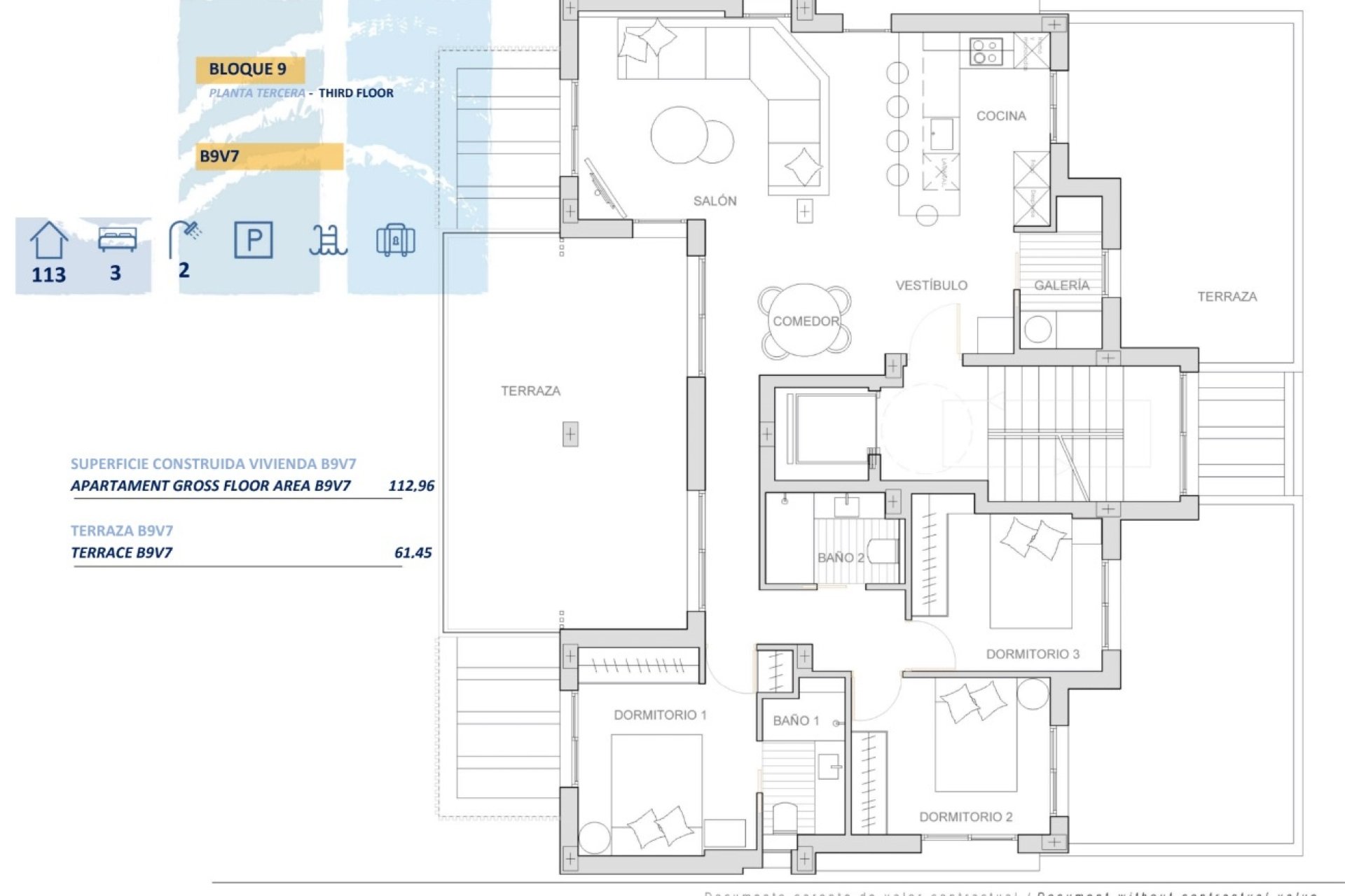 Los exteriores de estas viviendas están pensados para maximizar el confort y el disfrute del clima mediterráneo. Todas las propiedades cuentan con terrazas privadas, ideales para relajarse al aire libre. Además, las plantas bajas disponen de jardines privados, ofreciendo un espacio adicional para el esparcimiento. La instalación de persianas eléctricas y la preinstalación de aire acondicionado aseguran un ambiente cómodo y moderno. También se incluye la posibilidad de cargar vehículos eléctricos, subrayando el compromiso con la sostenibilidad y la innovación.