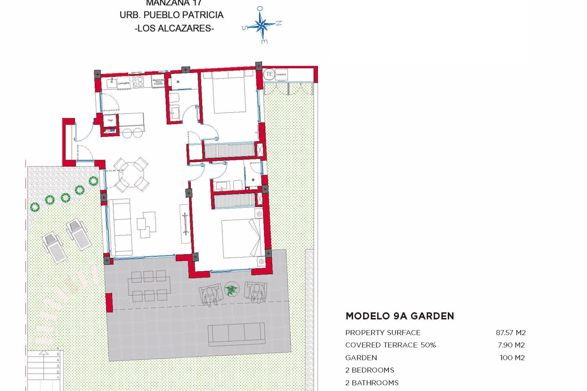 El entorno exterior de estas viviendas en planta baja está diseñado para maximizar el disfrute del clima mediterráneo. Cada propiedad cuenta con un jardín privado, ideal para crear un espacio personal al aire libre. Además, las terrazas proporcionan un lugar perfecto para relajarse o disfrutar de comidas al aire libre. La comunidad también ofrece amplias zonas ajardinadas, que añaden un toque de naturaleza y tranquilidad al entorno, complementadas por una piscina comunitaria donde los residentes pueden refrescarse y socializar.