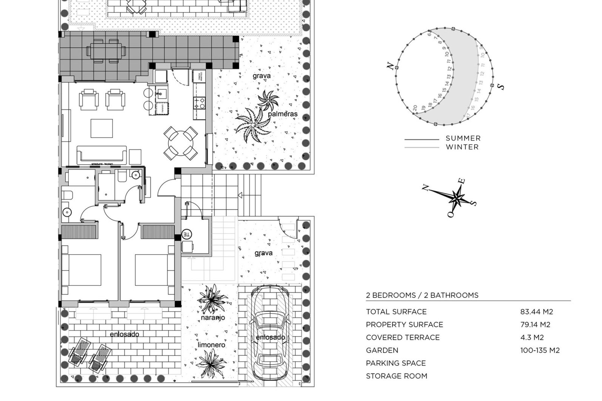 El interior de las propiedades en este residencial de Rojales está diseñado para ofrecer el máximo confort y funcionalidad. Con opciones de 2 o 3 dormitorios y 2 o 3 baños, cada vivienda está pensada para adaptarse a las necesidades de sus residentes. Los espacios interiores son amplios y luminosos, con un diseño que maximiza la entrada de luz natural y crea un ambiente acogedor. La distribución incluye un garaje privado, asegurando comodidad y seguridad para los vehículos de los residentes. Además, la presencia de un solárium en cada propiedad ofrece un espacio adicional para el relax o el entretenimiento, permitiendo disfrutar del clima mediterráneo durante todo el año. Los acabados de alta calidad y los detalles cuidadosamente seleccionados reflejan un estilo de vida sofisticado y moderno, haciendo de cada vivienda un lugar ideal para vivir.