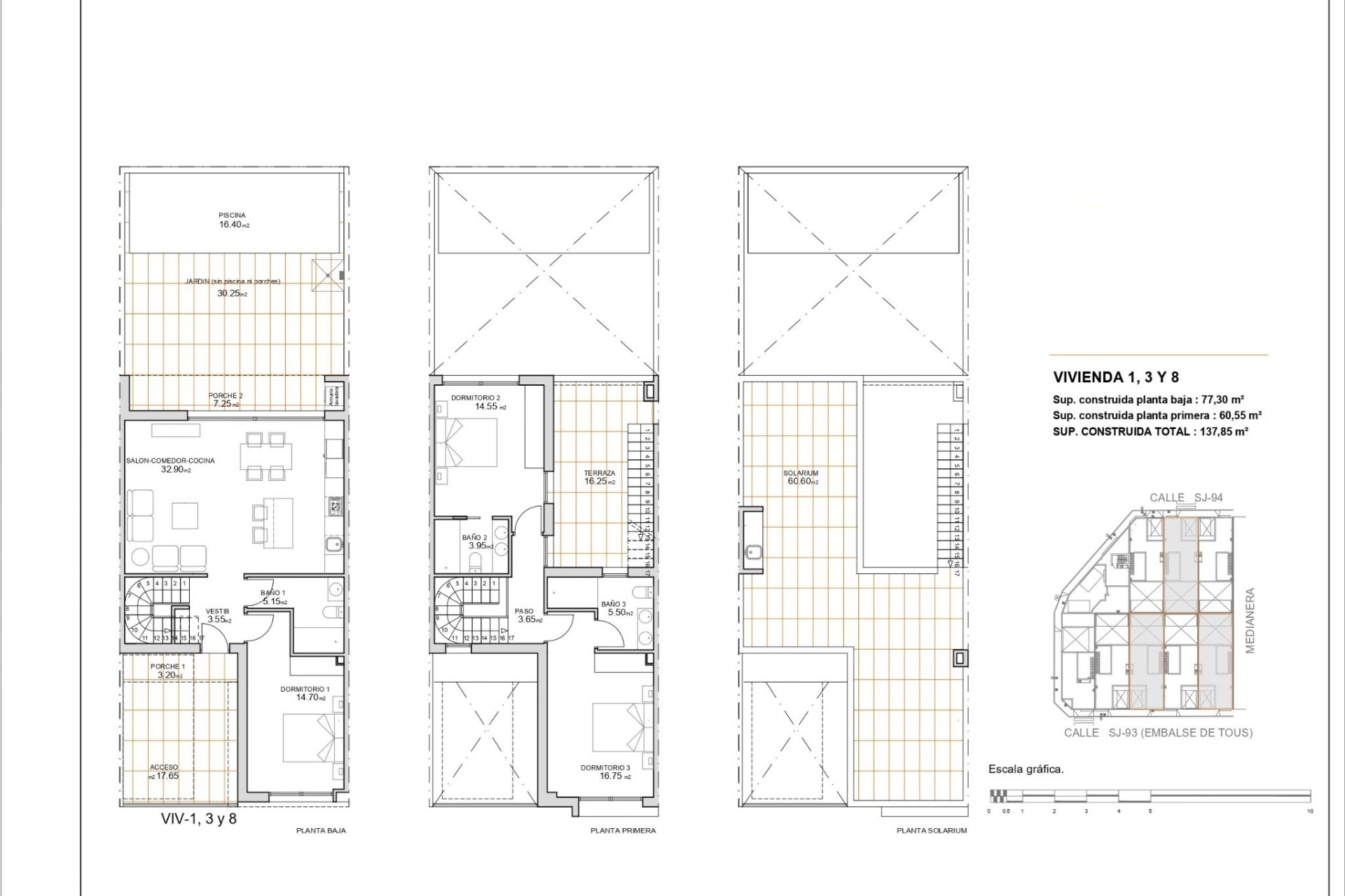 3Ubicado en la encantadora localidad de San Javier, este conjunto residencial ofrece una oportunidad única para disfrutar de la vida junto al mar. Con un total de 8 adosados, cada uno de ellos ha sido diseñado para maximizar el confort y la funcionalidad. La ubicación es ideal para aquellos que buscan un entorno tranquilo sin renunciar a las comodidades de la vida moderna. Además, las propiedades cuentan con vistas al mar, lo que añade un toque especial a cada hogar. La proximidad al mar, a tan solo 3 km, permite disfrutar de la playa en cualquier momento, mientras que el aeropuerto se encuentra a 35 km, facilitando los desplazamientos internacionales.