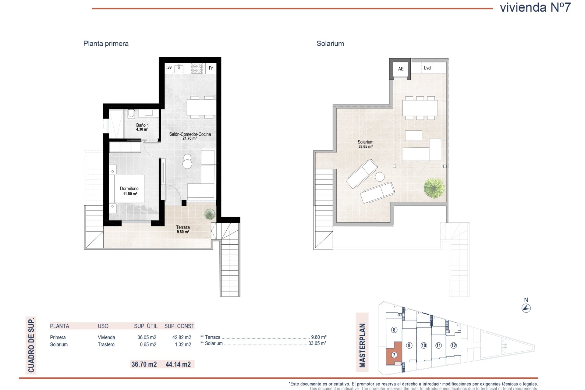 El interior de los bungalows está pensado para ofrecer un espacio acogedor y moderno. Los suelos de cerámica aportan un toque elegante y son fáciles de mantener. Las viviendas disponen de uno o dos dormitorios, y uno o dos baños, según la tipología elegida, lo que permite adaptarse a diferentes necesidades familiares. Los armarios empotrados proporcionan un almacenamiento eficiente, manteniendo el orden y la estética del hogar. Además, cada propiedad incluye una terraza y un solárium, ampliando las posibilidades de disfrutar del aire libre desde la comodidad del hogar. La seguridad está garantizada con un videoportero, que añade un nivel extra de protección y tranquilidad.
