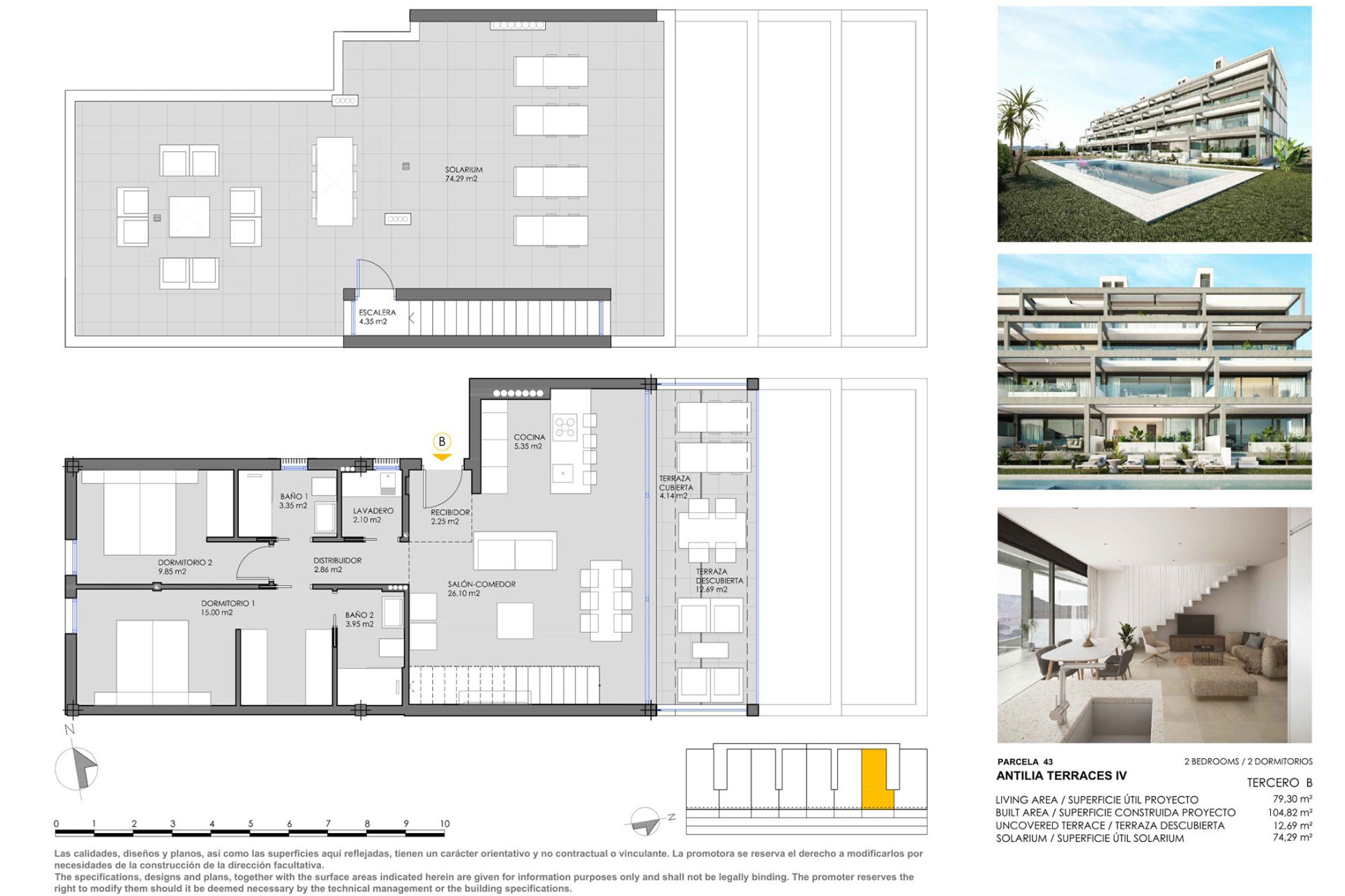 El interior de las propiedades está pensado para ofrecer un ambiente moderno y funcional. Los suelos de cerámica aportan un toque elegante y son fáciles de mantener, mientras que los electrodomésticos integrados facilitan el día a día. Los armarios empotrados optimizan el espacio de almacenamiento, manteniendo el orden y la organización en el hogar. Las opciones de distribución incluyen 2 o 3 dormitorios y 2 baños, adaptándose a diferentes necesidades familiares. La inclusión de terrazas y, en algunos casos, solárium, amplía el espacio habitable, permitiendo disfrutar del clima mediterráneo desde la comodidad del hogar.