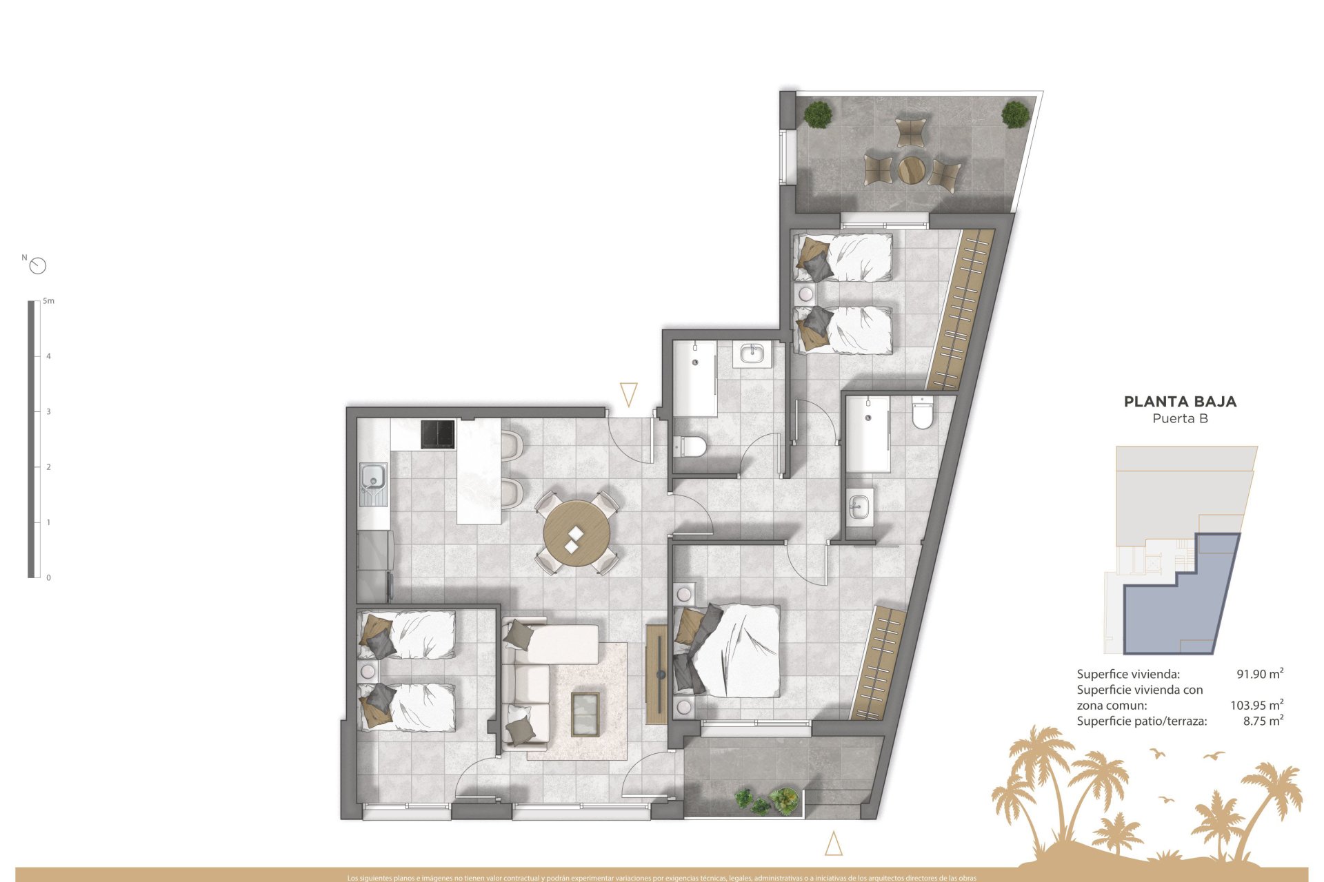 Los exteriores de este residencial están diseñados para complementar el entorno natural de Guardamar del Segura. Las propiedades incluyen terrazas privadas, perfectas para disfrutar de las vistas al mar y el clima mediterráneo. Además, los residentes de los Áticos tienen acceso a un solárium exclusivo, ideal para tomar el sol en privacidad. Las zonas ajardinadas comunitarias ofrecen un espacio verde donde relajarse y disfrutar de la naturaleza, mientras que la piscina comunitaria es perfecta para refrescarse en los calurosos días de verano. La cercanía al mar, a solo 100 metros, permite disfrutar de paseos por la playa y actividades al aire libre.