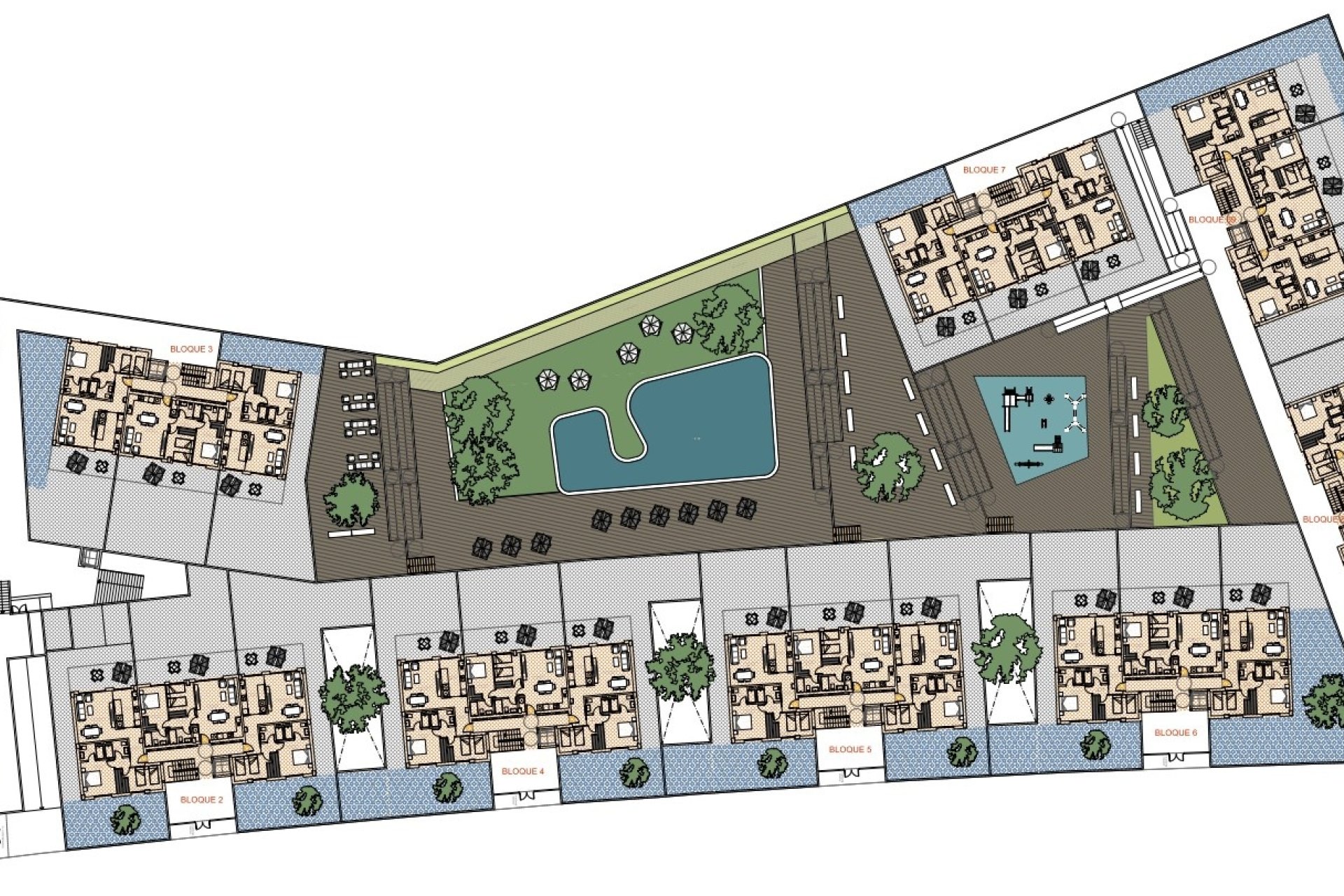 The residential complex offers a wide range of common areas that enrich the living experience of its residents. Among them are a community pool, jacuzzi, and a gym, ideal for leisure and wellness. The landscaped areas provide a tranquil space for walking or relaxing. For the more active, there is a paddle court, while the little ones can enjoy a safe and fun playground. Additionally, the complex has community parking, ensuring convenience and security for all residents.