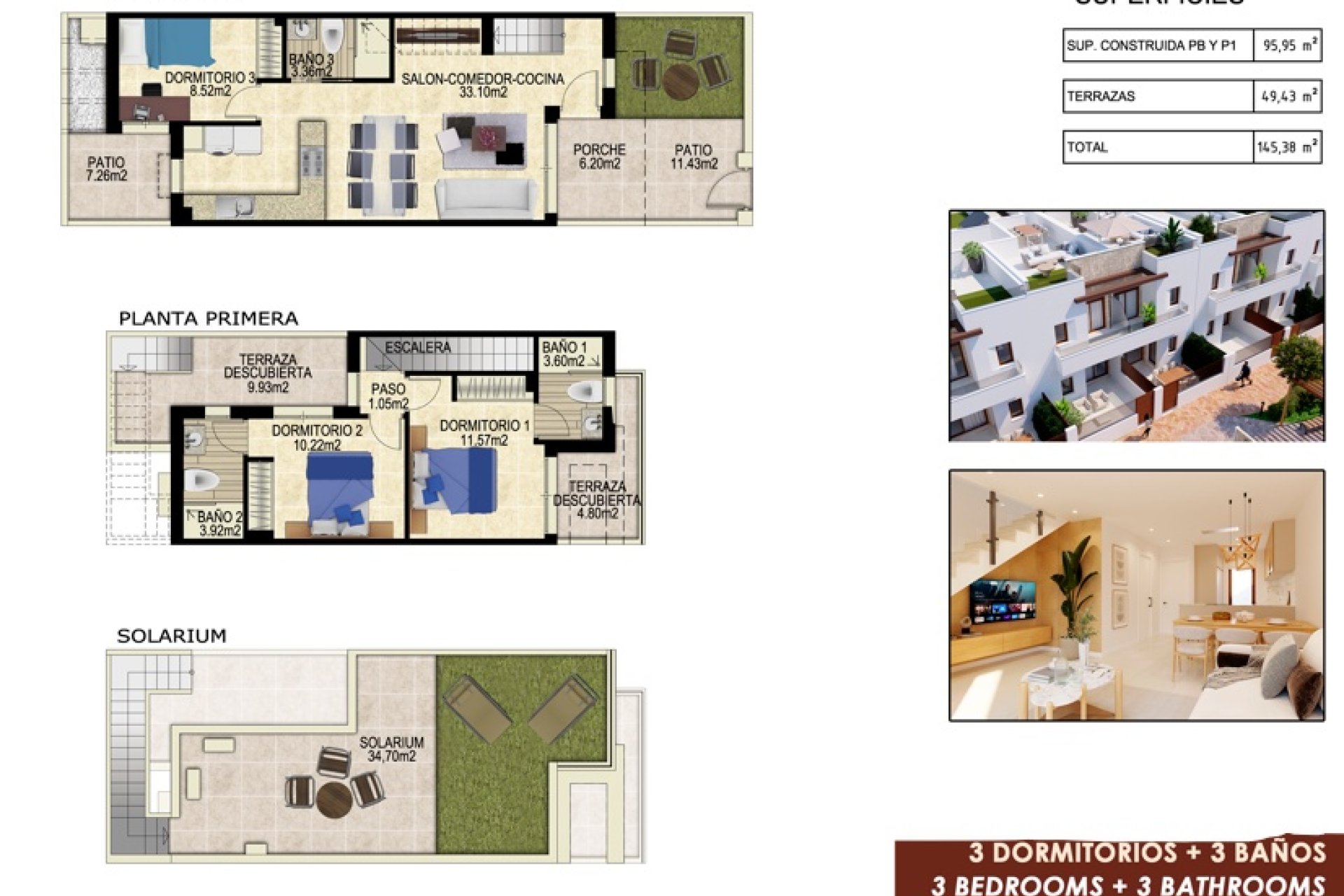 YesLocated in the beautiful area of Orihuela Costa, this residential complex offers 13 townhouses designed for those seeking comfort and functionality. Each home is designed to maximize space and comfort, with a layout that includes three bedrooms and three bathrooms. The location is ideal for golf enthusiasts, as it is just 1 km away from a golf course, allowing enjoyment of this sport in a privileged setting.