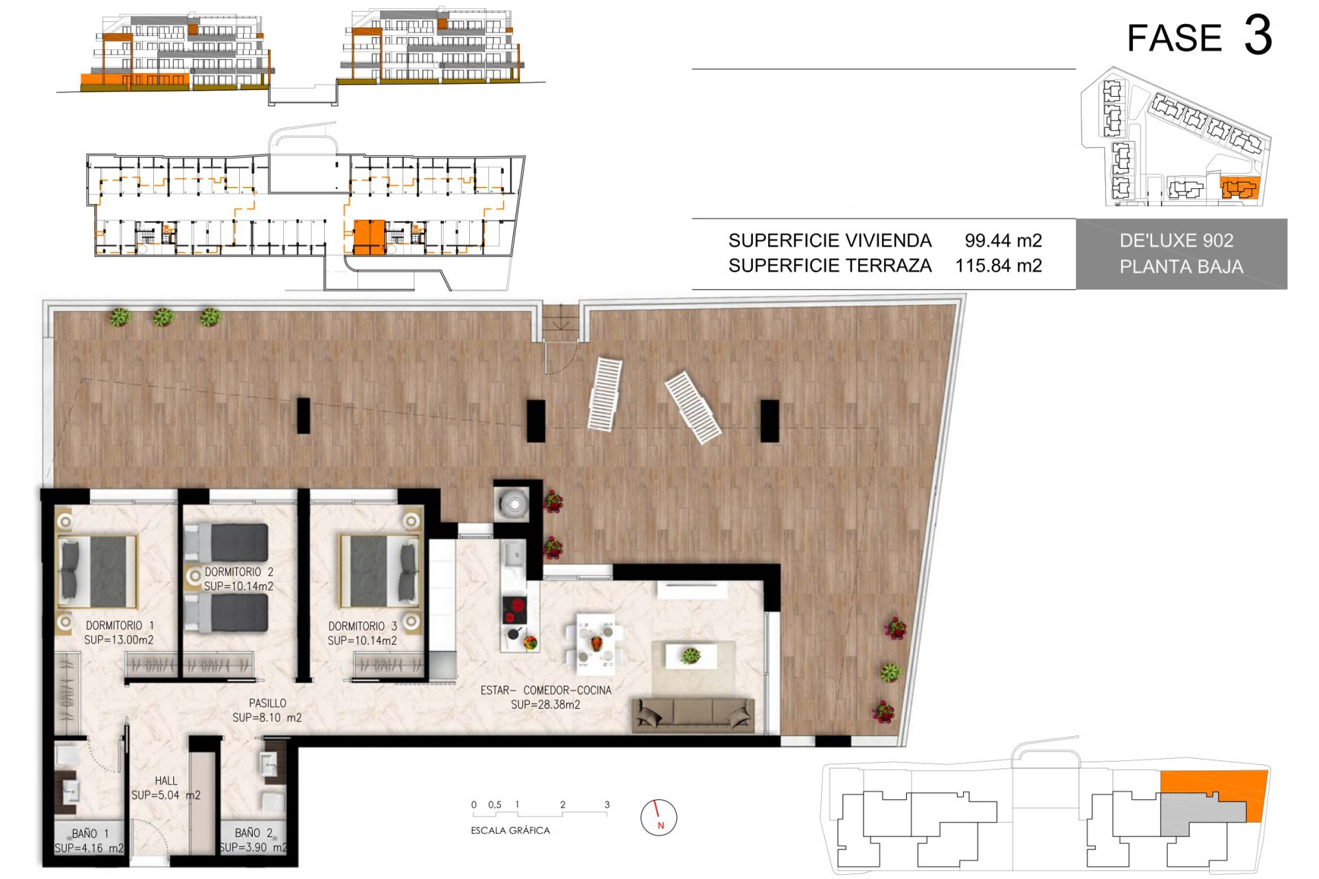YesThe development comprises a total of 144 luxury flats, all with spacious terraces. These 144 homes are distributed in 10 blocks, each with ground, first, second and penthouse floors, all with private terraces and solariums, and each with its own individual lift. The residential complex will also include a communal swimming pool, children's playground and extensive landscaped garden areas. The communal areas are surrounded by natural lawns, palm trees, fountains and paths that allow you to fully enjoy the privileged natural environment.
