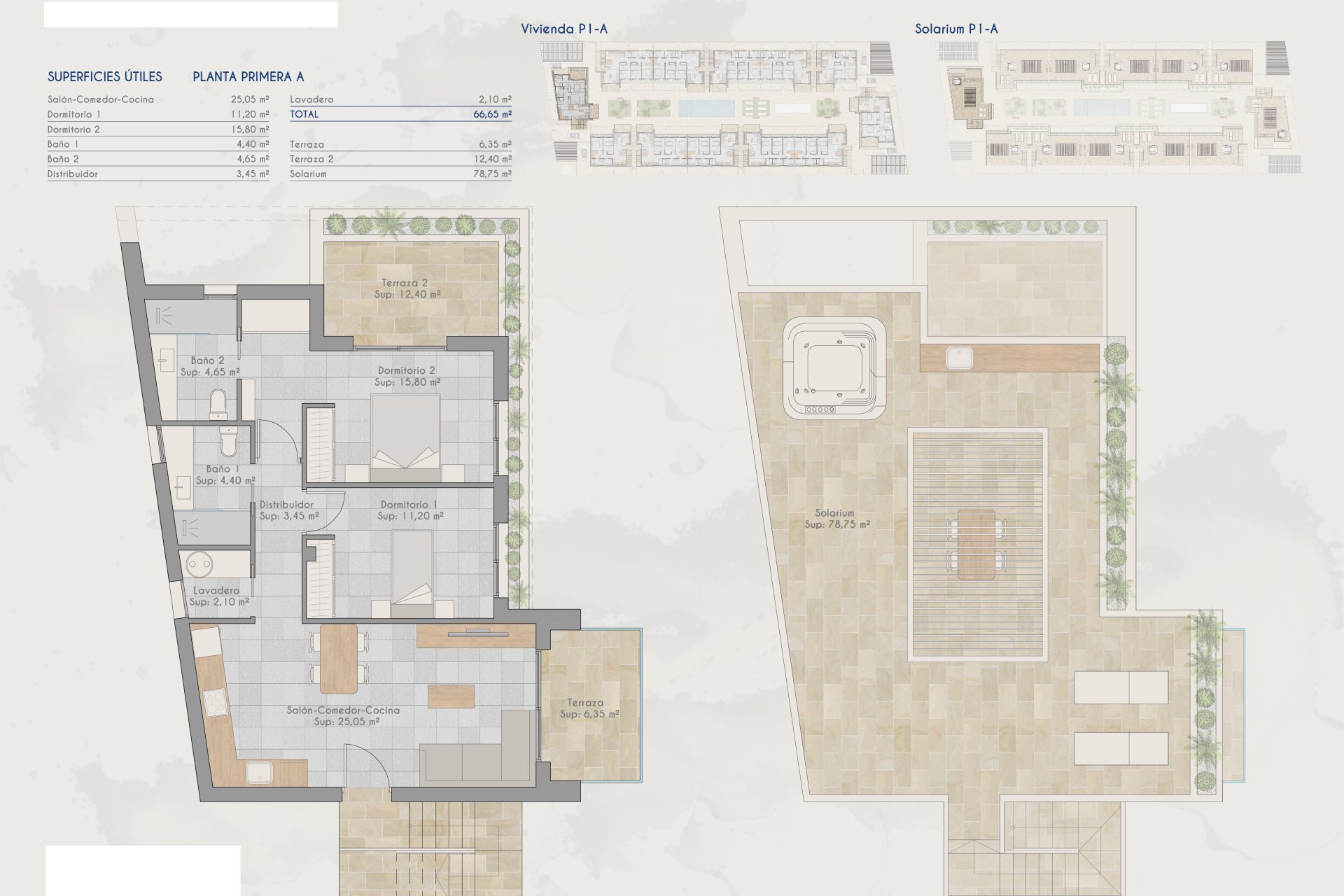 The outdoor spaces of these homes in Torre-Pacheco are designed to enjoy the Mediterranean climate. Each property features a private terrace, perfect for outdoor relaxation. Additionally, the homes include a solarium, offering additional space for sunbathing or enjoying the views of the surroundings. The presence of a pergola adds a touch of elegance and functionality, providing shade and style to the outdoor areas.