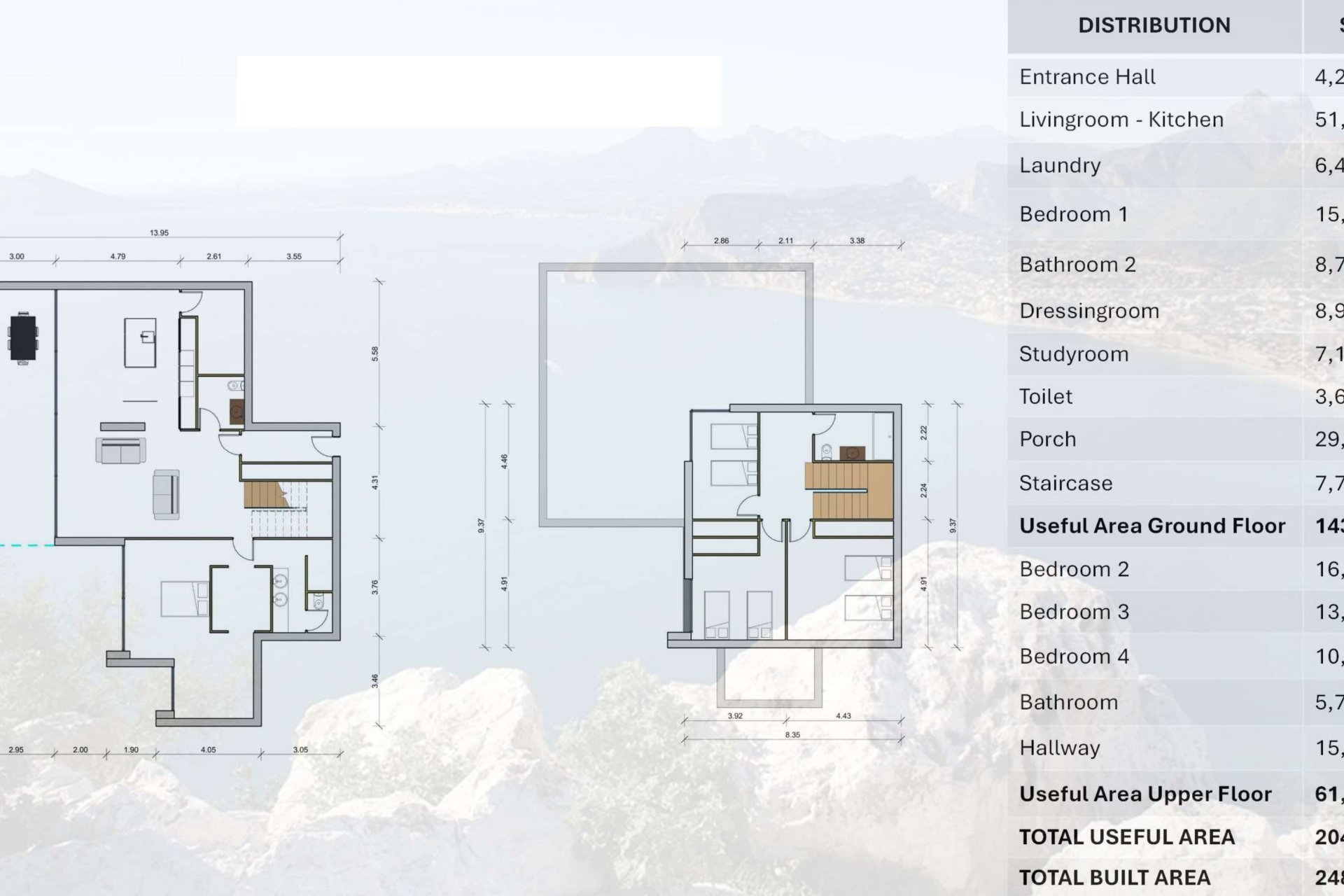 The interiors of these detached homes are designed with comfort and functionality in mind. The porcelain tile floors add a modern and elegant touch to the spaces. The homes are equipped with appliances, making daily life easier from day one. Built-in wardrobes offer efficient storage solutions, while electric blinds add convenience and security. The pre-installation of air conditioning ensures that the indoor climate is always suitable, adapting to the needs of each season. Additionally, each home includes a garage, providing a secure parking space.