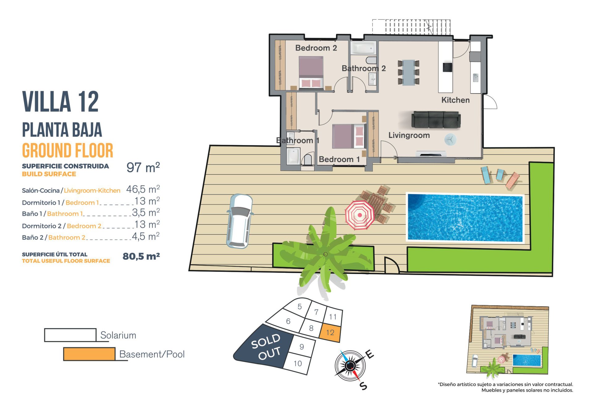 The interior of these detached homes is designed to maximize comfort and functionality. Ceramic floors provide a modern touch and are easy to maintain. The kitchen is equipped with high-quality appliances, making daily tasks easier. Electric shutters and a video intercom add an extra level of convenience and security. Built-in wardrobes offer efficient storage space, while the pre-installation of air conditioning allows for a pleasant temperature year-round.