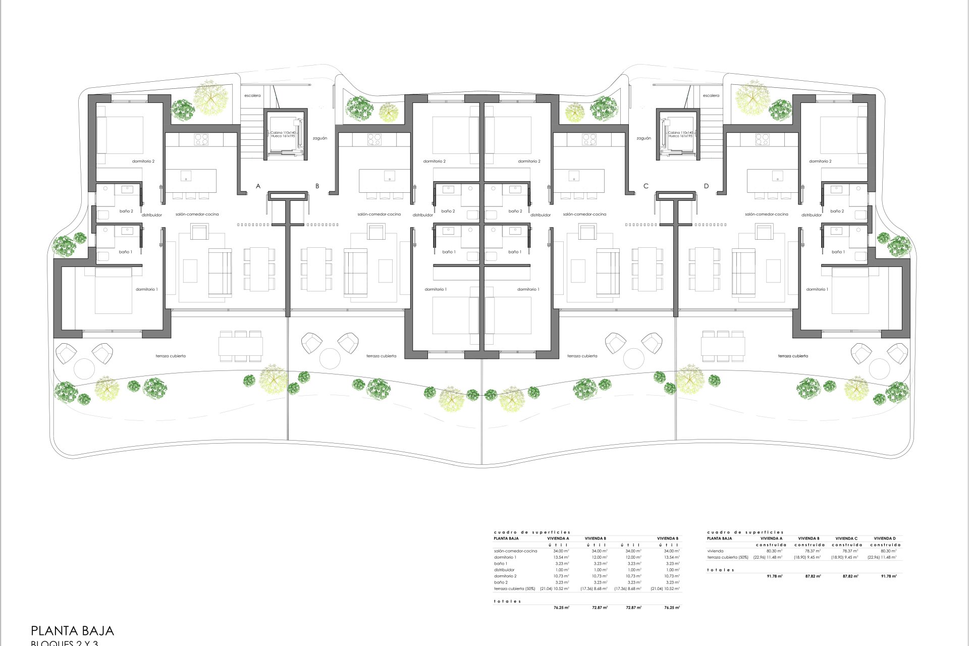 The outdoor areas of this residential complex in Guardamar del Segura are designed to maximize enjoyment of the Mediterranean climate. The properties feature private terraces and gardens, perfect for outdoor relaxation. Additionally, the complex offers the possibility of enjoying a solarium, ideal for sunbathing in a private setting. The location just 2 km from the sea allows for beach walks and water activities. The presence of communal landscaped areas adds a touch of greenery and freshness to the environment, creating a harmonious and natural space.