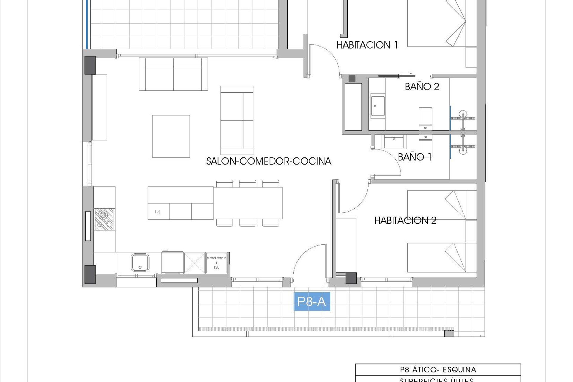 The interior design of the properties in this Benidorm residential complex focuses on comfort and modernity. The apartments, ground-floor units, and penthouses are equipped with ceramic floors that provide an elegant look and easy maintenance. Modern technology is integrated through video intercoms and electric shutters, ensuring comfort and security. The kitchens are fully equipped with high-quality appliances, and air conditioning ensures a pleasant environment year-round. Built-in wardrobes offer efficient storage, while the layout includes two bedrooms and two bathrooms, providing ample space for families or couples.