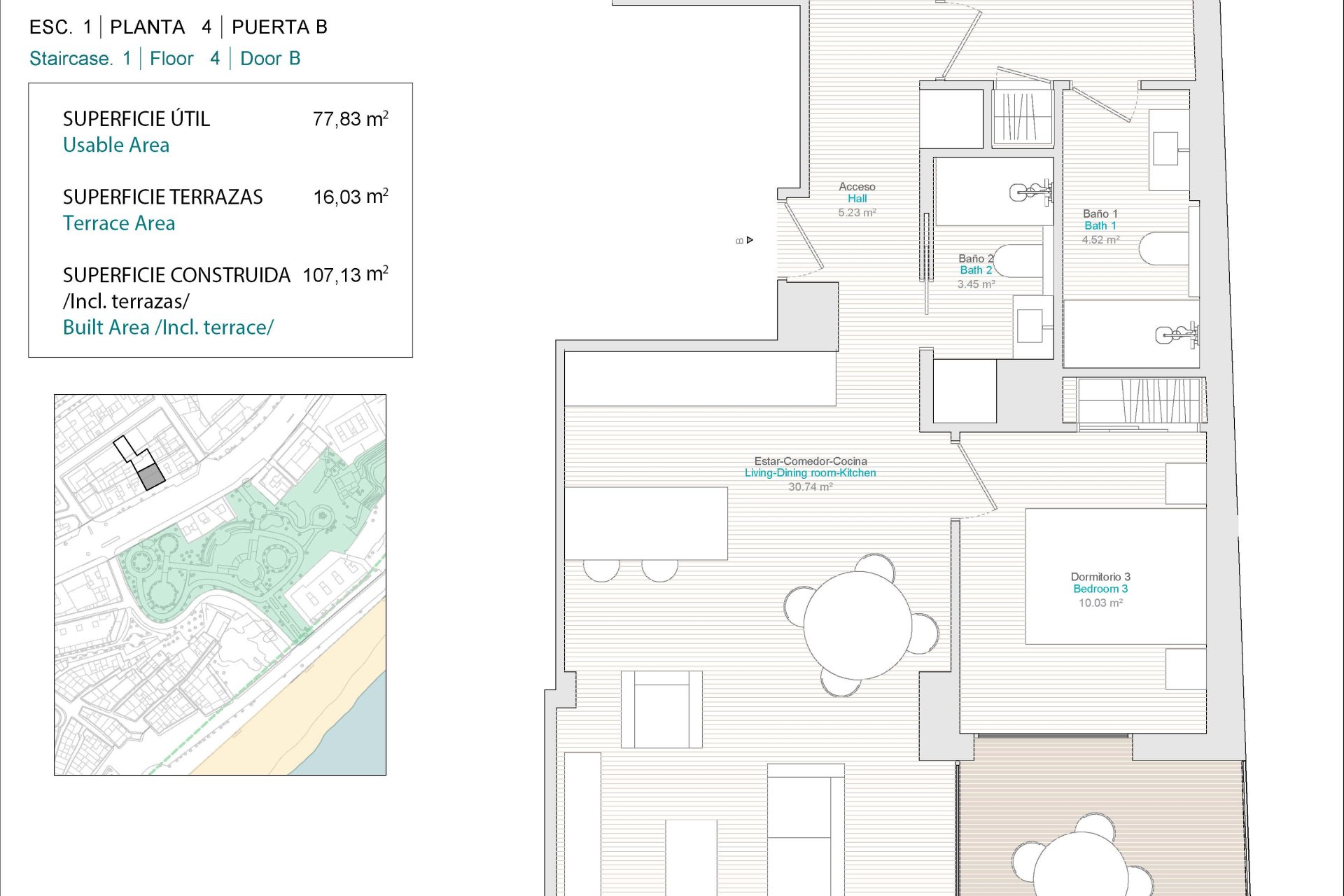 El diseño exterior de la promoción evoca la esencia de Villajoyosa, con fachadas que rinden homenaje a las casas tradicionales de la zona, utilizando acabados que recuerdan a la piedra natural. Los elegantes bloques de seis plantas están rodeados de amplias zonas verdes, creando un entorno sereno y armonioso. Las amplias terrazas de cada vivienda invitan a disfrutar del clima mediterráneo, mientras que las vistas al mar desde las plantas superiores ofrecen una experiencia incomparable, como si navegara en un barco.