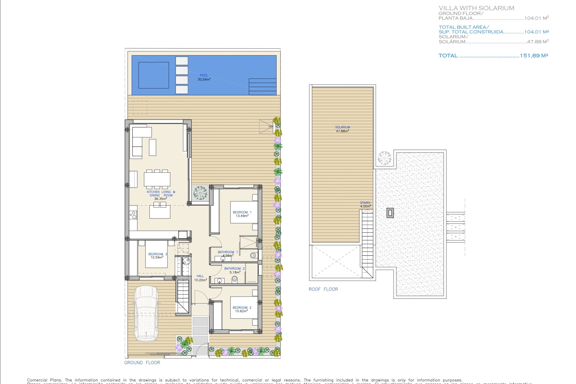 The homes feature outdoor spaces designed to enjoy the Mediterranean climate. Each property has a private garden, ideal for creating a personal oasis of tranquility. Additionally, the terraces offer extra space for outdoor leisure, perfect for sunset dinners or relaxation moments. Residents can also enjoy a solarium, an ideal spot for sunbathing with total privacy. The presence of a private pool in each home adds a touch of luxury, allowing for refreshing dips during hot summer days.