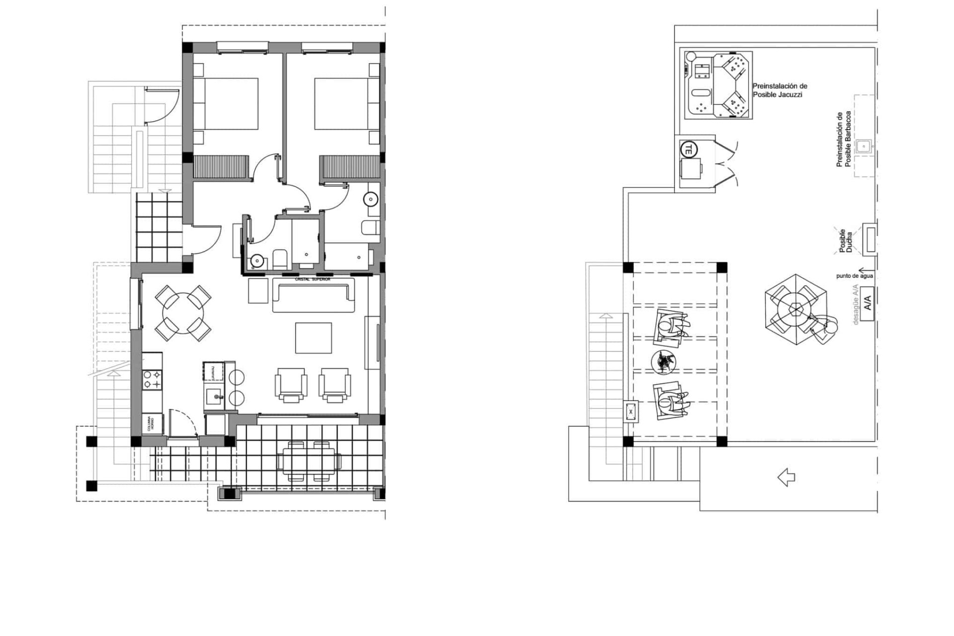 The exteriors of these bungalows are designed to maximize enjoyment of the Mediterranean climate. Each property features a private garden, perfect for relaxing or enjoying outdoor activities. The terraces offer additional space for entertainment or simply to enjoy the views. Additionally, the presence of a solarium provides an ideal place to sunbathe in total privacy. The inclusion of a pergola adds a touch of elegance and functionality, allowing enjoyment of the outdoor space at any time of day.