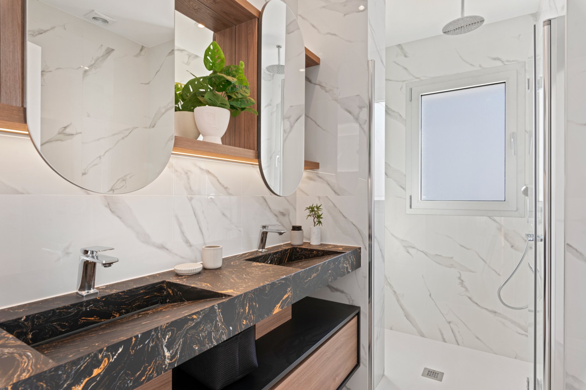 The interior of this detached villa is designed to offer maximum comfort and functionality. With four bedrooms and four bathrooms, each space is intended to provide privacy and comfort for all family members. Built-in wardrobes in the bedrooms optimize storage space, while included appliances make daily life easier. The porcelain stoneware flooring is not only aesthetically pleasing but also easy to maintain, ensuring a clean and modern environment. The layout includes a garage, providing a secure space for parking and additional storage.