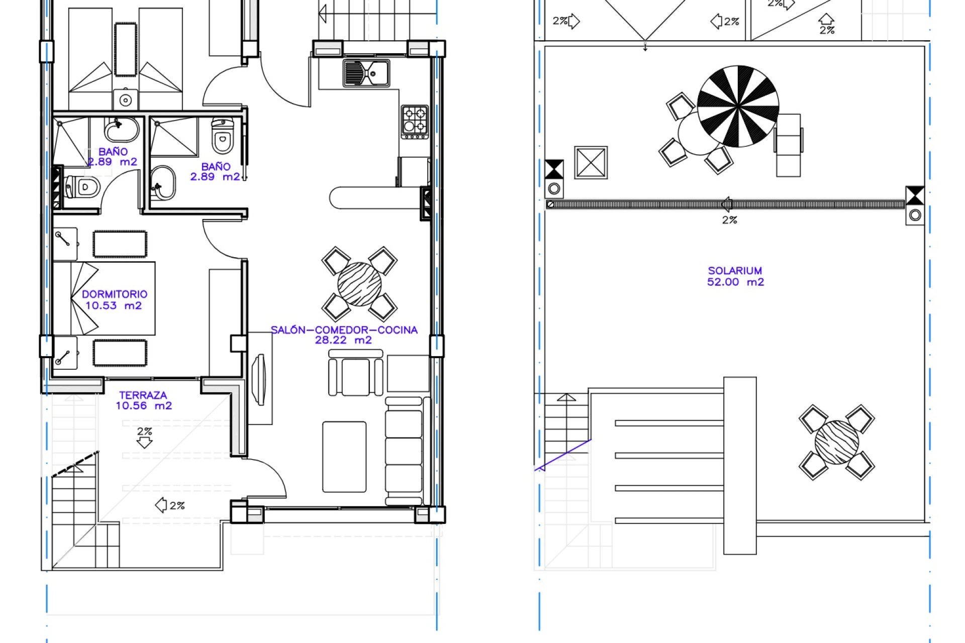 The exterior design of the homes in San Pedro del Pinatar is intended to maximize enjoyment of the Mediterranean climate. Each property features a private garden, ideal for creating a personal green space or enjoying outdoor moments. The terraces offer a perfect place to relax, sunbathe, or share outdoor meals with family and friends. Additionally, the bungalows include a solarium, providing extra space for leisure and relaxation. The availability of an electric car charging point reflects a commitment to sustainability and adaptation to modern mobility needs.