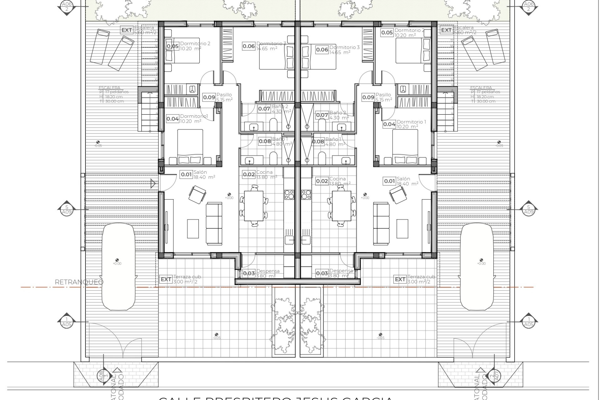 The interior of the townhouses is designed to offer comfort and functionality. Each home has three bedrooms and two bathrooms, providing adequate space for families. The built-in wardrobes in the bedrooms optimize storage, while the pre-installation of air conditioning ensures a pleasant environment throughout the year. The porcelain tile flooring adds a touch of elegance and facilitates maintenance. Additionally, some homes include a jacuzzi, offering extra comfort and luxury.