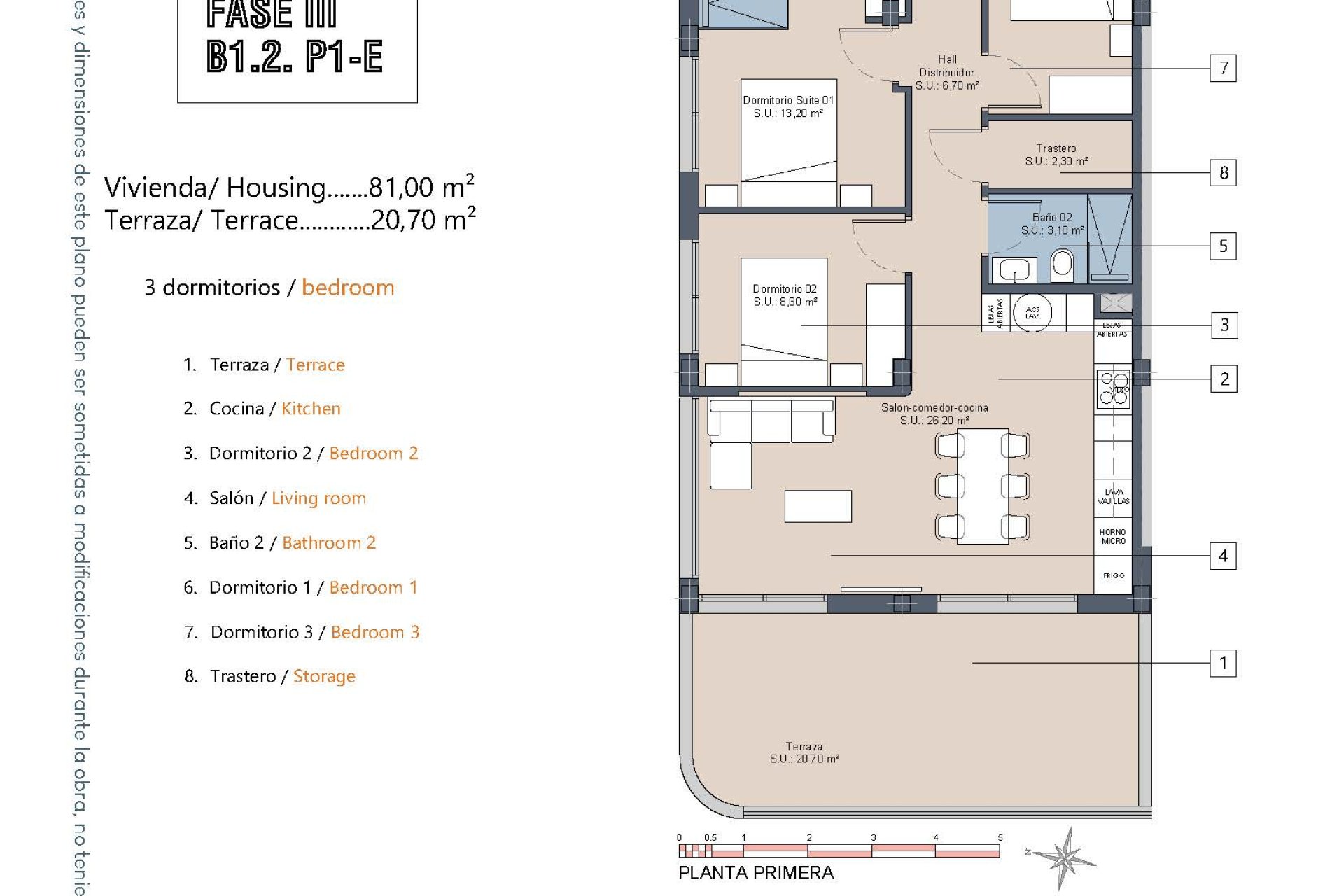 Inside, the homes are equipped with modern features that ensure comfort and style. The apartments and penthouses offer options of 2 or 3 bedrooms and 2 or 3 bathrooms, catering to different family needs. Porcelain tile floors add a touch of elegance and are easy to maintain. The kitchens are equipped with appliances, making daily life easier. Built-in wardrobes provide efficient storage, while the pre-installation of air conditioning ensures a pleasant environment year-round. Additionally, there is the option to purchase a garage, adding convenience and security.