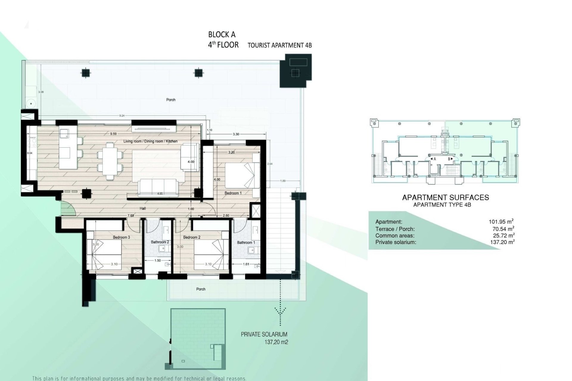 The interiors of the apartments and penthouses are designed to offer maximum comfort. All properties are fully furnished, ready to move in. Porcelain tile floors add a touch of elegance and durability, while electric blinds and the video intercom provide an extra level of convenience and security. Built-in wardrobes optimize storage space, maintaining order and functionality in every room. With three bedrooms and two bathrooms, each home is designed to meet the needs of families or couples seeking a spacious and well-distributed space.