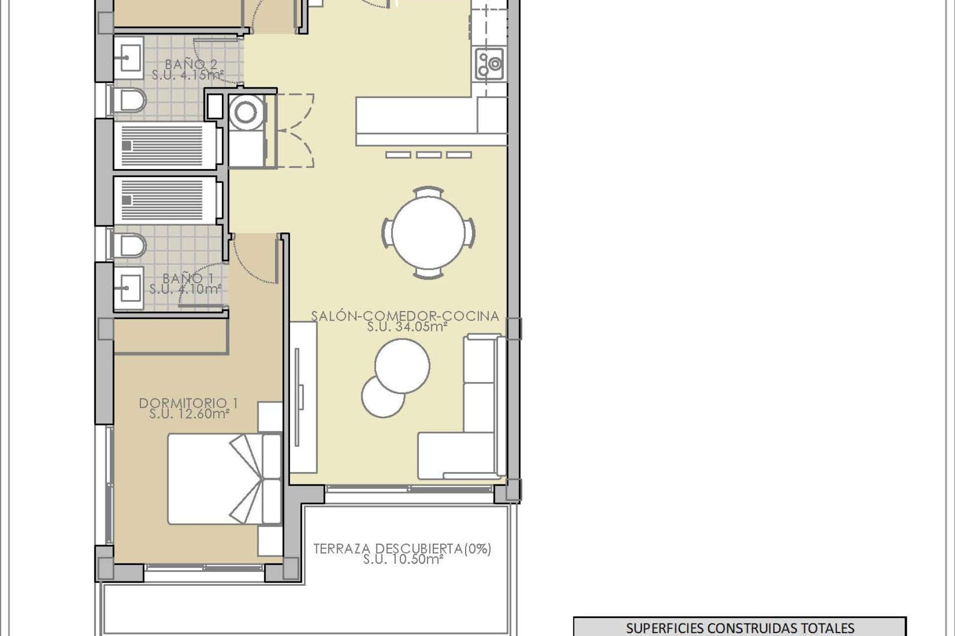The interior of the bungalows is designed to offer functionality and comfort. With two bedrooms and two bathrooms, each space is optimized for daily comfort. Electric blinds and included appliances facilitate modern living, while built-in wardrobes provide efficient storage. The pre-installation of air conditioning ensures the home is ready to maintain a pleasant temperature year-round. Additionally, the presence of a garage offers convenience and security for vehicle parking.