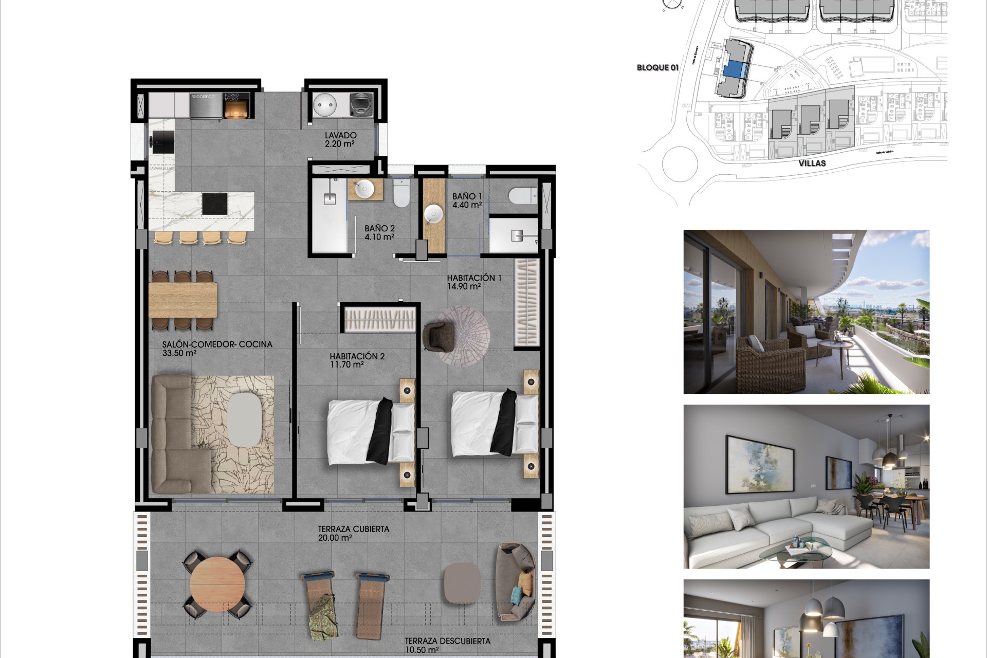 YesExclusive residential complex located in one of the most privileged areas of Finestrat, just minutes from the beaches of Benidorm. This complex, comprising 66 modern flats and 14 villas, is designed to offer a unique and high quality lifestyle. With a wide range of services and amenities such as swimming pools, gymnasium, coworking areas and sports facilities, residents can enjoy luxury and comfort in a natural environment. In addition, its proximity to shopping centres, golf courses and leisure options makes it the perfect place for those looking to combine comfort and entertainment. The homes are energy certified A, integrating sustainable measures to reduce environmental impact and improve energy efficiency.