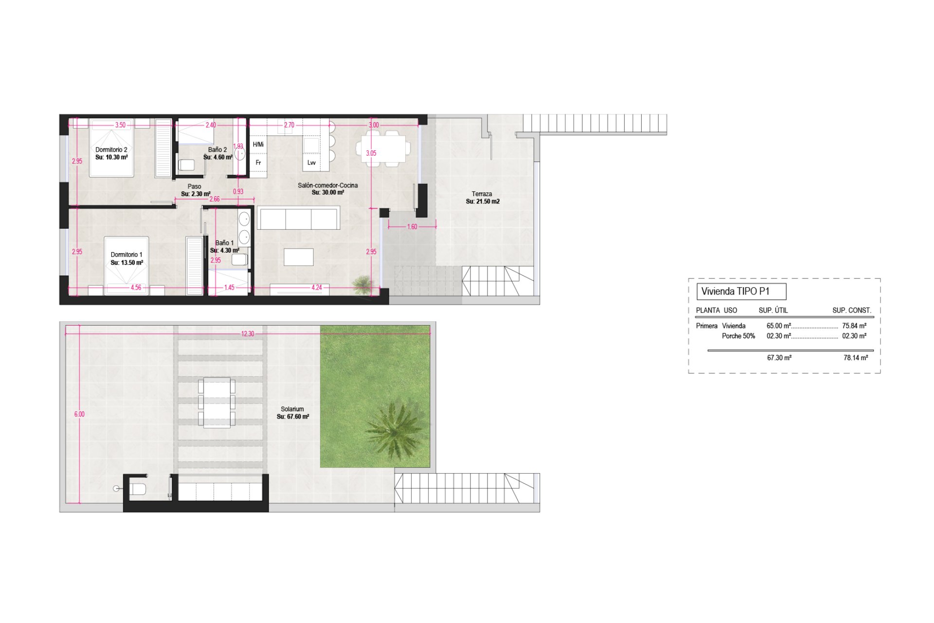 The interior of the bungalows is carefully designed to offer a functional and welcoming living space. With a layout that includes two bedrooms and two bathrooms, each home is designed to provide comfort and privacy. The built-in wardrobes in the bedrooms offer efficient storage solutions, while the pre-installation of air conditioning allows for a pleasant temperature year-round. The inclusion of modern appliances in the kitchen facilitates daily tasks, making these bungalows an ideal option for those seeking a move-in ready home.