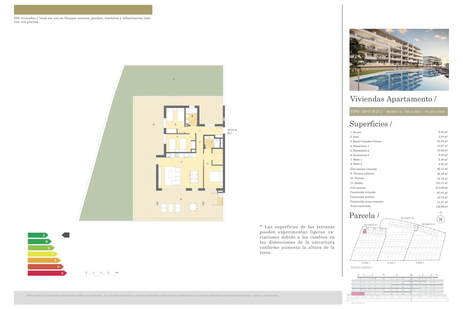 The common areas of the residential are designed for the enjoyment of the whole family. The community gardens offer a green space to relax or stroll, while the community pool is perfect for cooling off during the warmer months. The little ones can enjoy the playground, designed for their fun and safety. Additionally, the complex has a community garage and parking areas, ensuring all residents have access to a space for their vehicle.