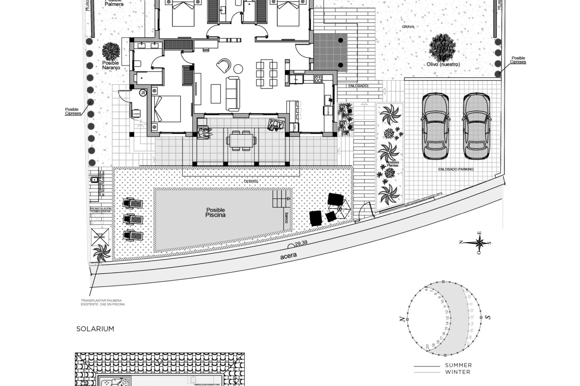 The exterior of this detached property in Ciudad Quesada is designed to fully enjoy the Mediterranean climate. The presence of a private pool is a true luxury, allowing refreshing swims in the privacy of your home. Additionally, the garden offers a green space to relax or enjoy outdoor activities. The terrace is a perfect place for outdoor dining or simply enjoying the views. The pergola provides shade and an additional aesthetic touch, creating a cozy environment for family or friend gatherings. The solarium is another highlight, offering additional space to sunbathe or enjoy panoramic views.