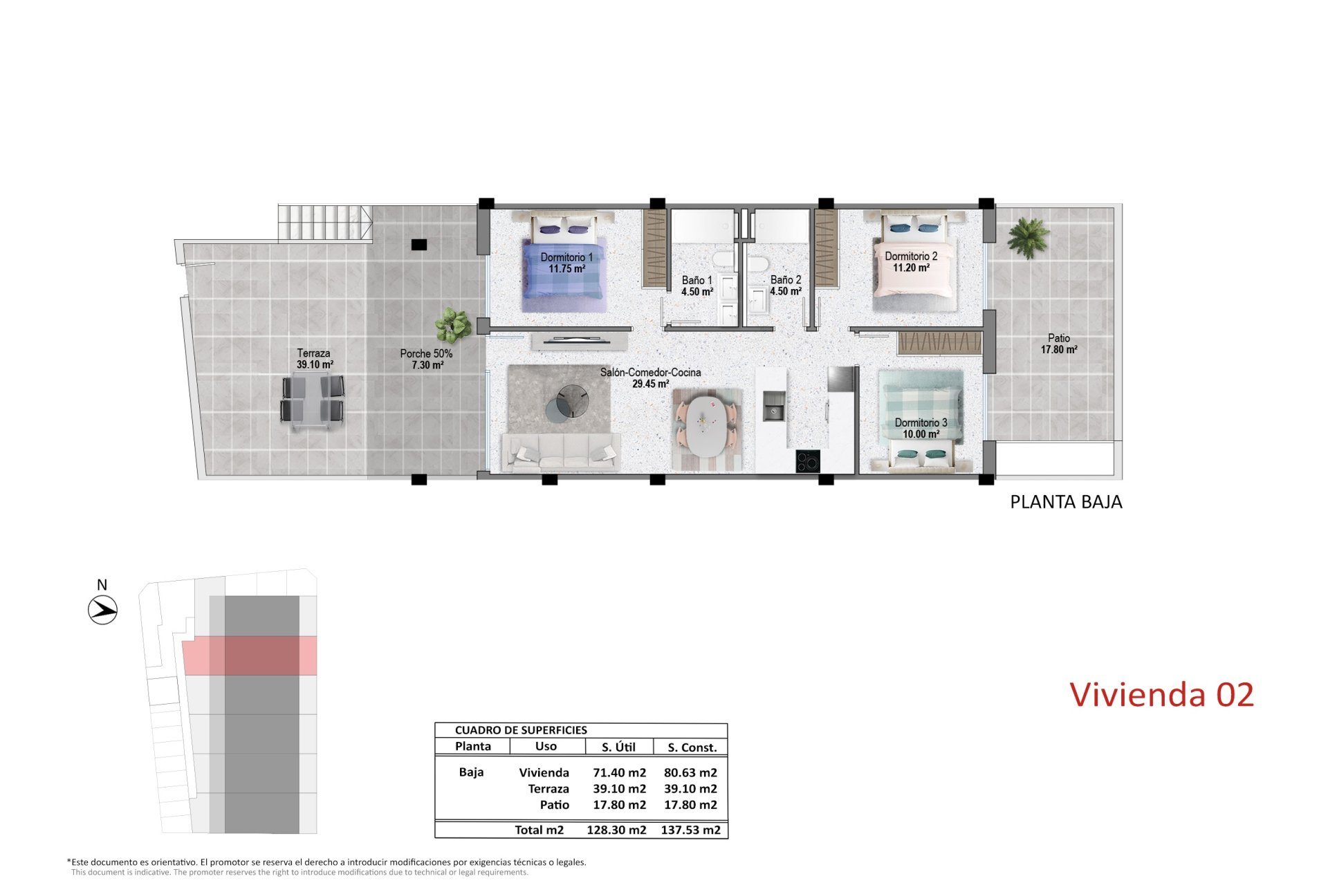 The homes are equipped with modern features that ensure maximum comfort. All properties include electric shutters, appliances, and air conditioning, ensuring a comfortable and efficient environment. The interior layout is spacious and functional, with options for 2 or 3 bedrooms and 2 bathrooms, adapting to different family needs. The inclusion of a garage provides additional convenience for parking and storage.