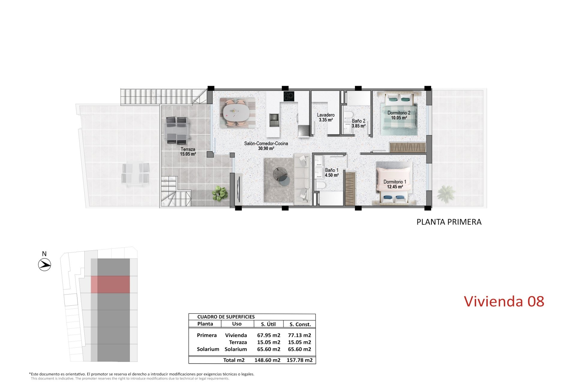 The outdoor environment of these homes is a true oasis of tranquility. Each property features a private terrace, perfect for enjoying the Mediterranean climate. Additionally, residents have access to a solarium, ideal for relaxing and sunbathing in a private setting. The proximity to the sea, just 3 km away, allows for enjoying the sea breeze and pleasant coastal walks. The landscaped areas of the complex offer a green space to enjoy nature and the outdoors.