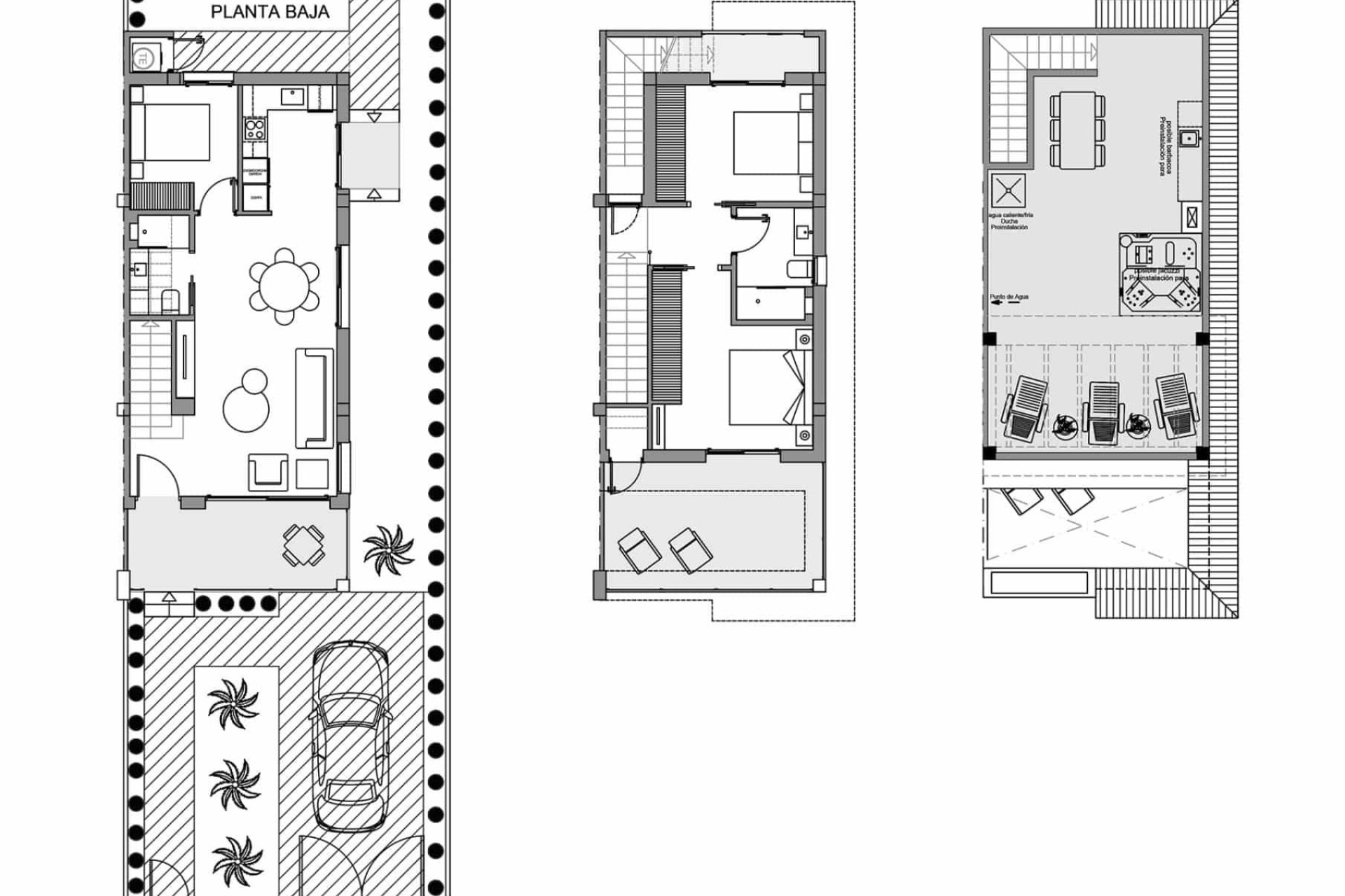 2Located in the charming town of Rojales, this exclusive collection of homes offers a unique lifestyle in a tranquil and well-connected setting. With a total of 7 properties, each one is an example of modern design and functionality. The homes are "semi-detached", ensuring a perfect balance between privacy and community. The location is ideal for those seeking a home near the coast, as it is just 4 km from the sea, allowing for enjoyment of the sea breeze and spectacular views. Additionally, the nearest airport is 40 km away, facilitating international travel.