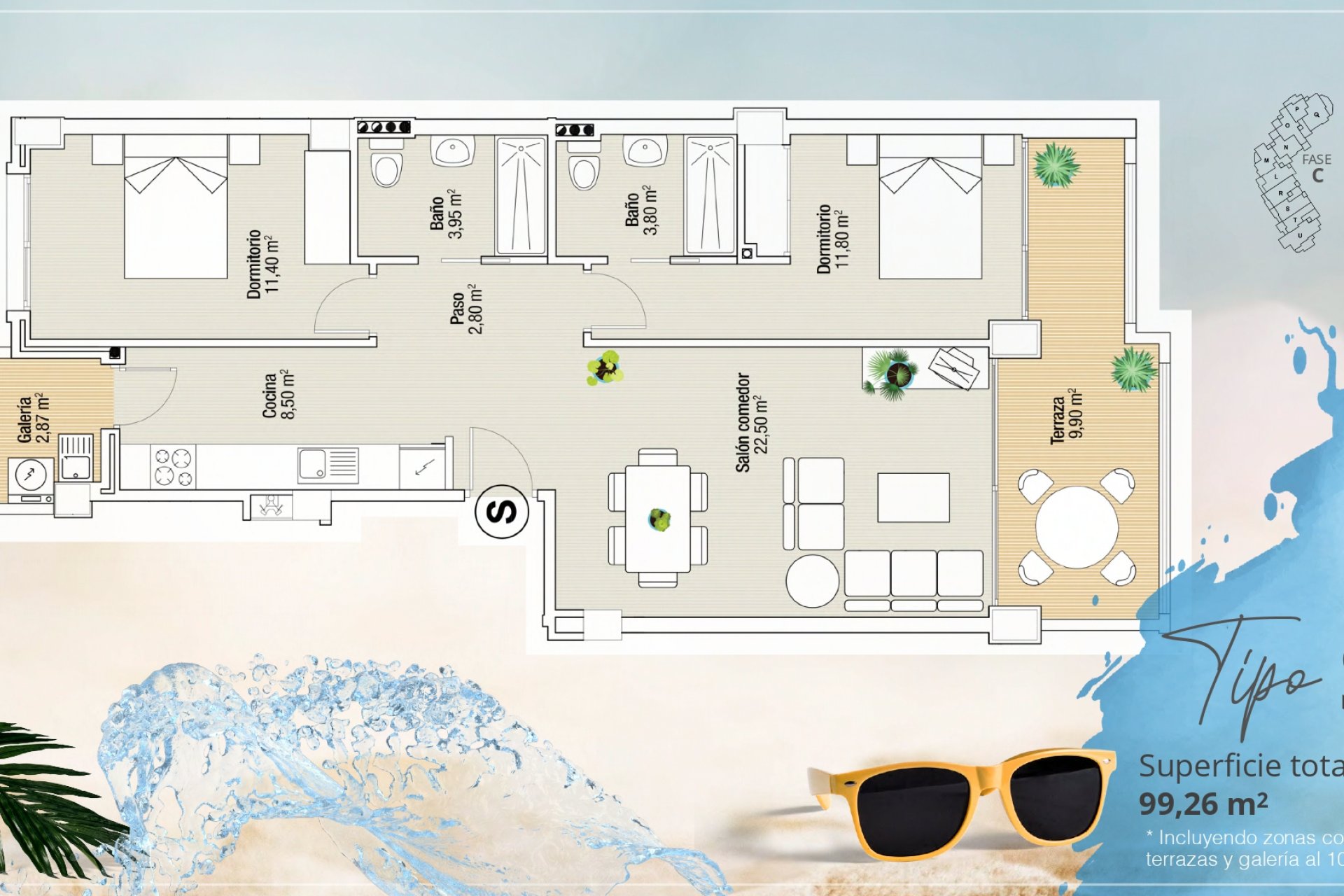 YesLocated in the exclusive area of La Manga del Mar Menor, this residential complex offers a selection of 167 properties including apartments and penthouses. Designed to maximize comfort and functionality, these homes stand out for their impressive sea views, allowing residents to enjoy the beauty of the surroundings from the comfort of their home. The property types vary between apartments and penthouses, offering options of 1, 2, and 3 bedrooms, thus catering to different family and personal needs. Each residence is equipped with modern features such as air conditioning, built-in wardrobes, and electric shutters, ensuring a comfortable and contemporary lifestyle. Additionally, the properties are fully furnished, ready for move-in.