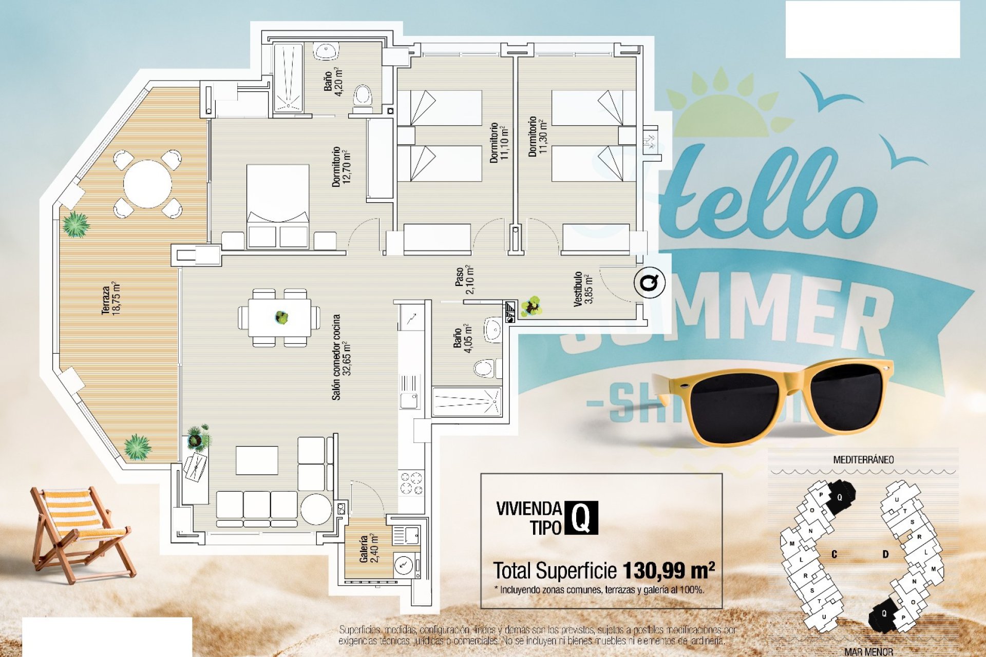 YesLocated in the exclusive area of La Manga del Mar Menor, this residential complex offers a selection of 167 properties including apartments and penthouses. Designed to maximize comfort and functionality, these homes stand out for their impressive sea views, allowing residents to enjoy the beauty of the surroundings from the comfort of their home. The property types vary between apartments and penthouses, offering options of 1, 2, and 3 bedrooms, thus catering to different family and personal needs. Each residence is equipped with modern features such as air conditioning, built-in wardrobes, and electric shutters, ensuring a comfortable and contemporary lifestyle. Additionally, the properties are fully furnished, ready for move-in.