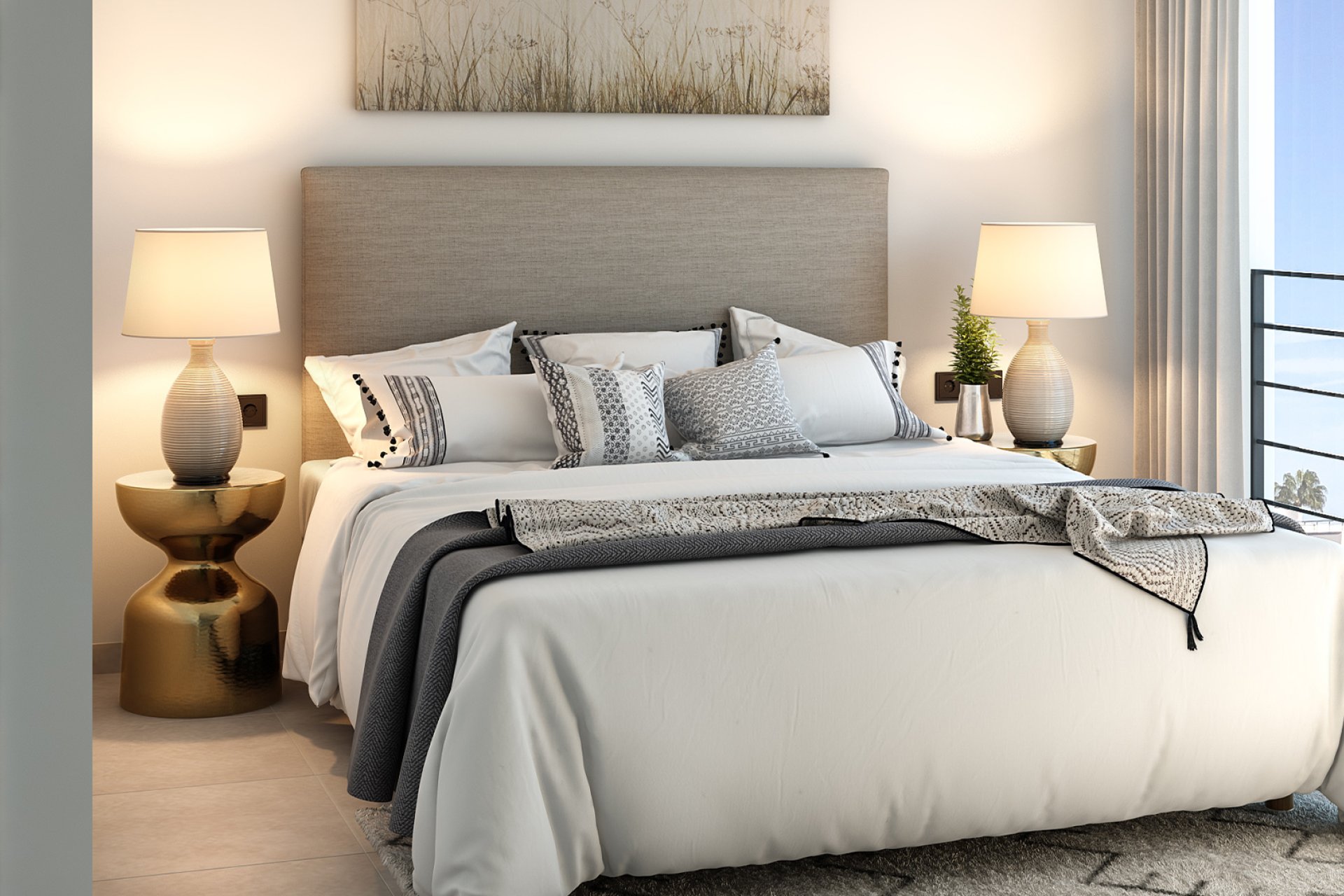 The exterior design of these homes in Dénia stands out for its integration with the natural environment. Each property has a private garden, ideal for enjoying the Mediterranean climate. Additionally, terraces and solariums offer additional outdoor spaces, allowing residents to enjoy unobstructed views and moments of relaxation. The presence of a private pool in each home adds a touch of exclusivity, turning the home into a personal oasis. The communal landscaped areas complement the environment, providing a shared green space for all residents to enjoy.
