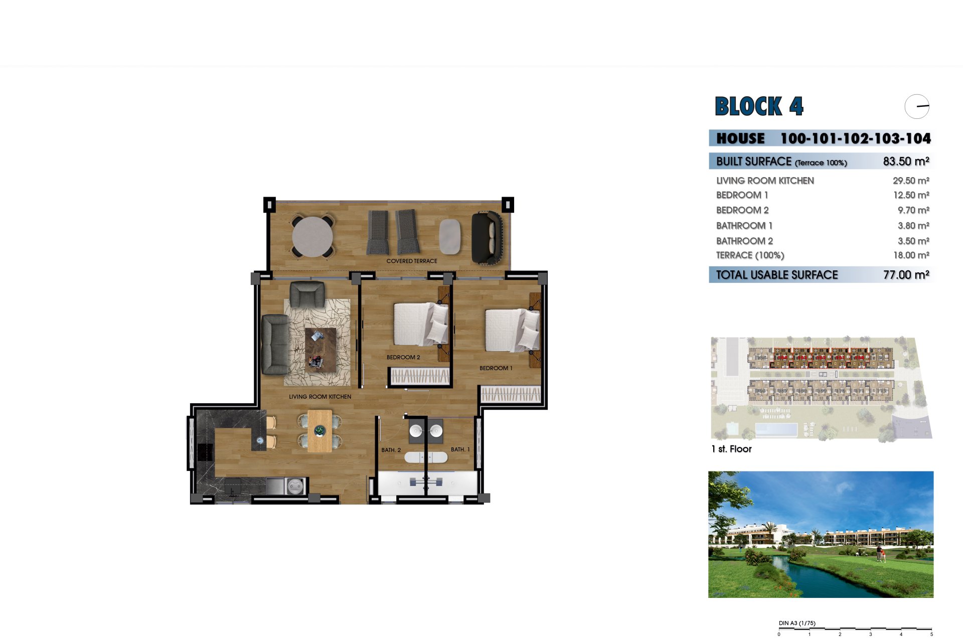 The exteriors of these homes are designed to offer an unparalleled outdoor lifestyle. Each property features a terrace, ideal for enjoying the views and the Mediterranean climate. Additionally, some types include a private solarium, perfect for relaxing under the sun. Ground-floor homes have private gardens, providing a personal green space to enjoy with family or friends. For those seeking an extra touch of luxury, some properties feature a private pool, offering a personal oasis to cool off during the warm summer days.