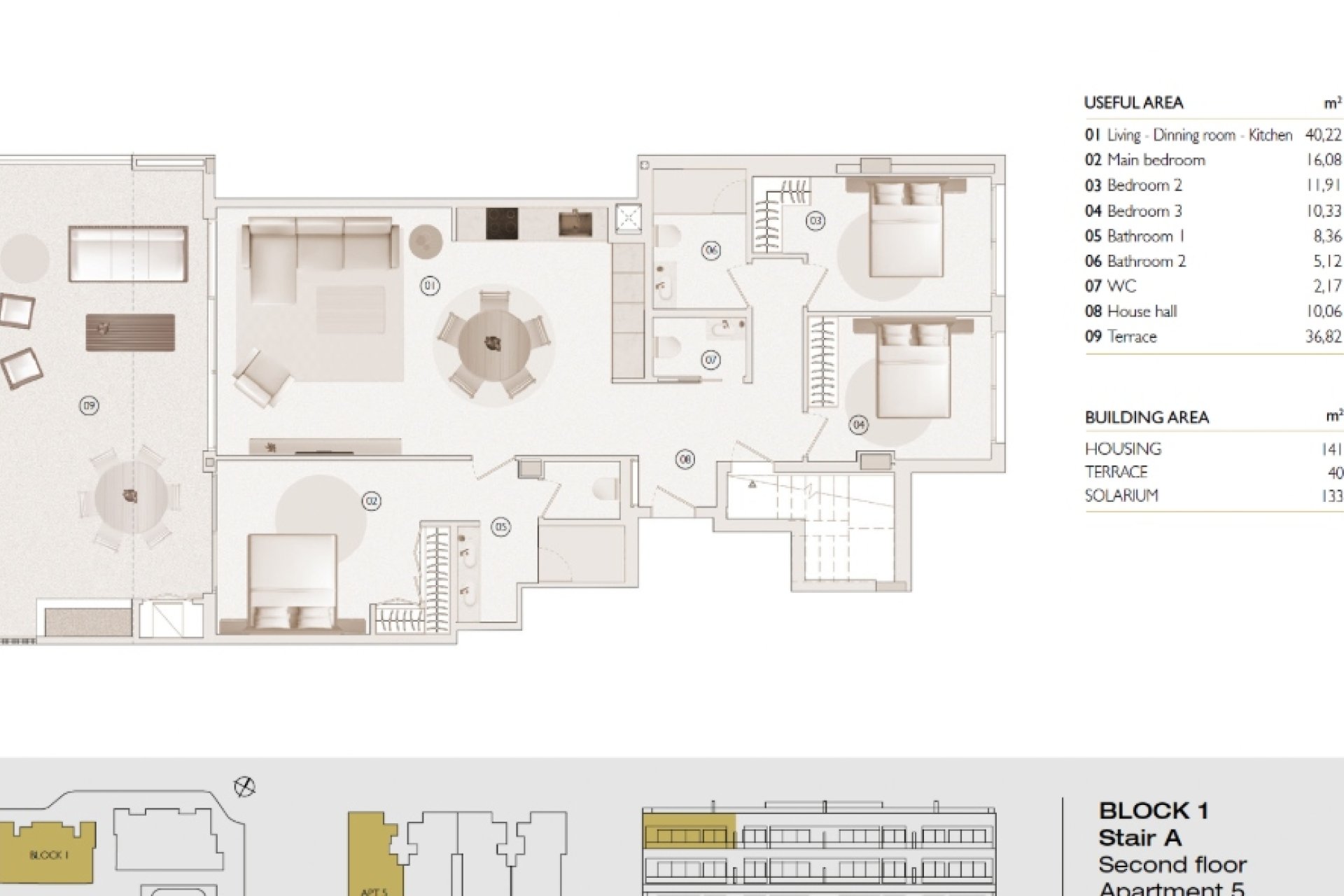The outdoor areas of these properties in Dehesa de Campoamor are designed to complement the natural beauty of the surroundings. Each home features a private terrace, ideal for enjoying the sea views and Mediterranean climate. The penthouses offer an additional solarium, providing extra space for outdoor leisure. The ground-floor units have direct access to private gardens, creating a personal oasis of tranquility. The integration of these outdoor spaces with the interior of the homes has been carefully executed, ensuring a smooth and harmonious transition between both environments.