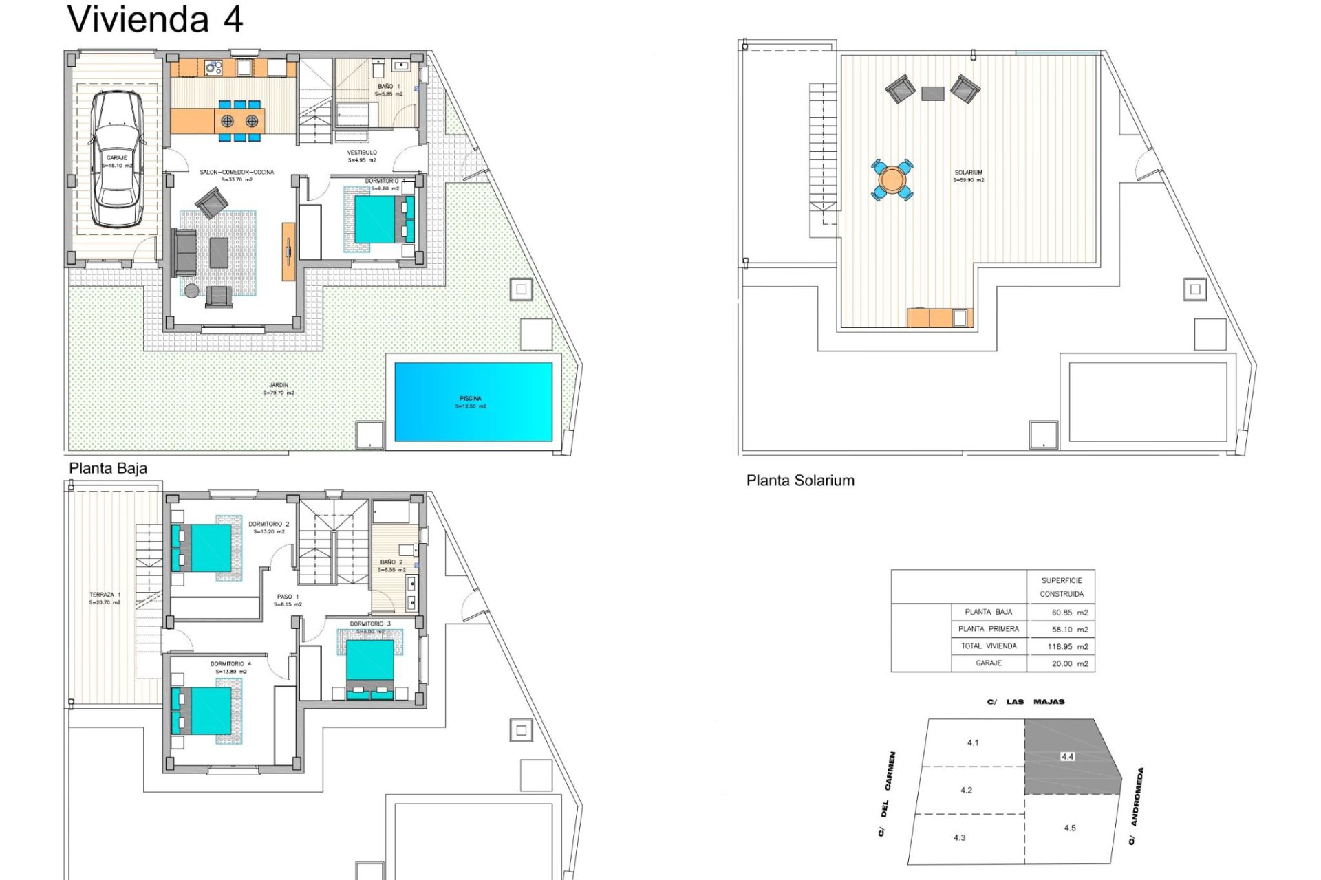 The interior of these independent homes is designed to maximize comfort and functionality. With four bedrooms and three bathrooms, each home offers a spacious and well-distributed area for the whole family. Electric shutters and included appliances make daily life easier, while built-in wardrobes provide efficient storage. The pre-installation of air conditioning ensures the interior temperature is always suitable, adapting to the needs of each season. These details make each home a modern and welcoming place to live.