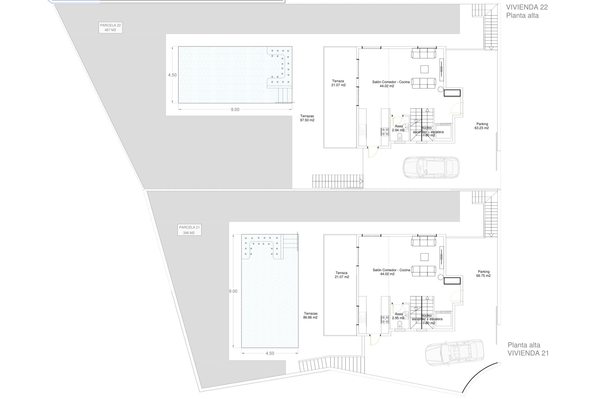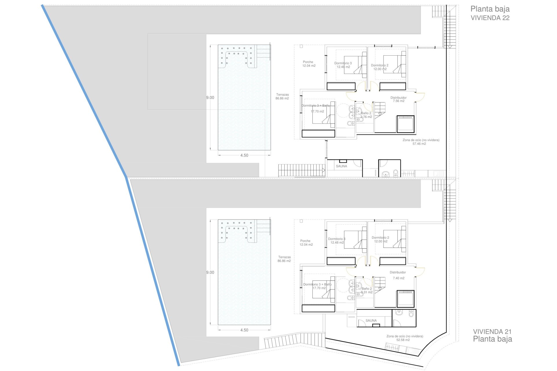 4They have large terraces and gardens, with parking area, living/dining room/kitchen, three bedrooms, at least one of them en-suite. Most of our properties have solariums with spectacular views over the golf course and all have private swimming pools. We are only a few metres from the commercial centre with shops, supermarket, bars and international restaurants. 5 minutes from the village of Rojales and 15 minutes from the beaches of Guardamar. The airport is 35 minutes away.