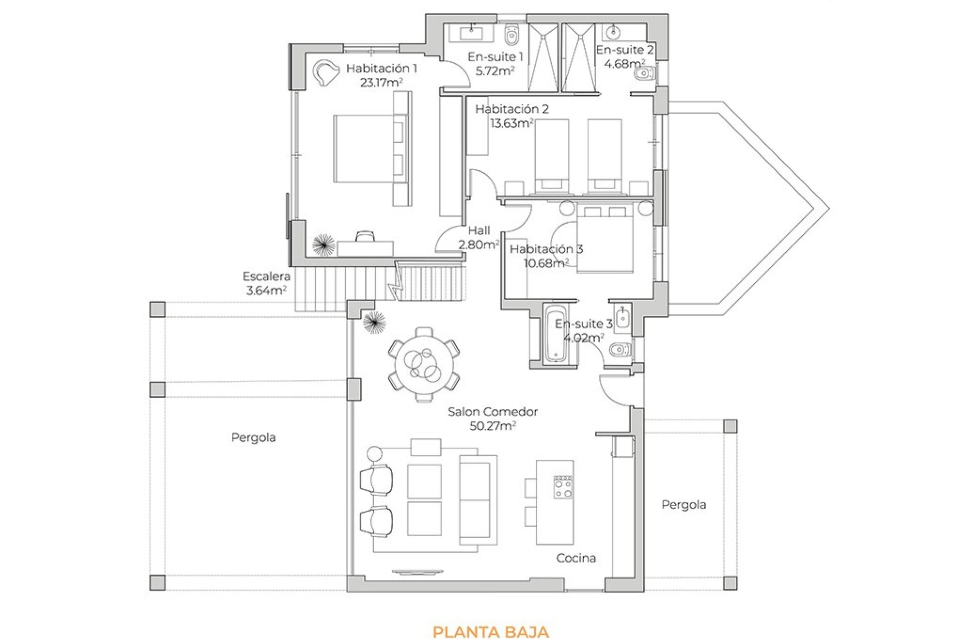 The exterior design of the villas in Cuevas del Almanzora is simply stunning. Each property features a private terrace, perfect for enjoying the views and Mediterranean climate. The private gardens offer a personal green space to relax or enjoy outdoor activities. Additionally, each villa includes a private pool, providing a refreshing oasis during the warm summer days. The presence of a pergola adds a touch of elegance and functionality, offering shade and additional space for outdoor entertainment.