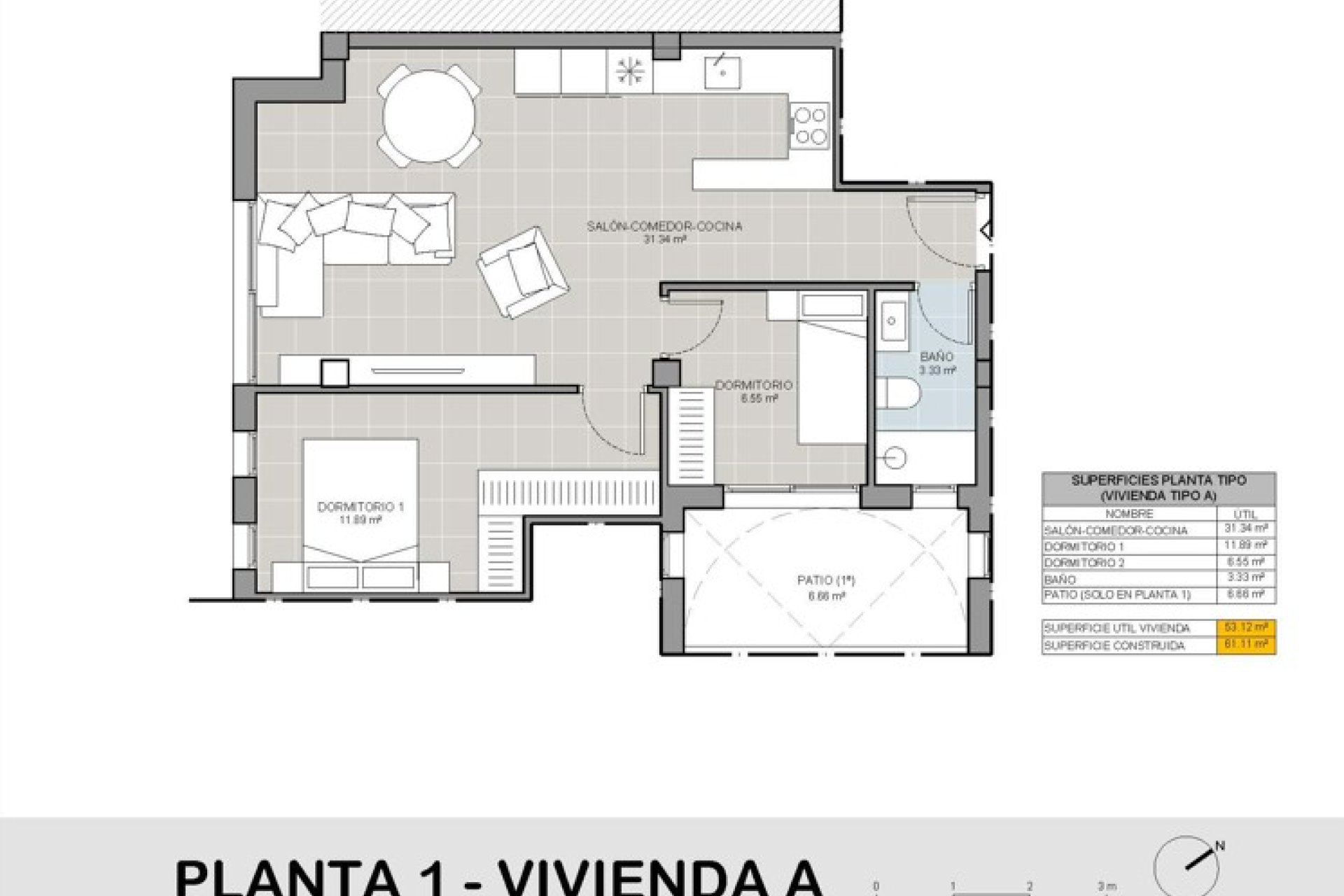 YesModern residential building composed of 23 functional apartments, located just 60 meters from the Mediterranean Sea. It offers apartments with 1 to 3 bedrooms and 1 to 2 bathrooms, with areas ranging from 39 m² to 107 m². Thanks to its energy class A+, it is an efficient and sustainable option both for year-round living and to enjoy as a second home. The area is surrounded by essential services such as supermarkets, schools, restaurants, parks and beach bars.