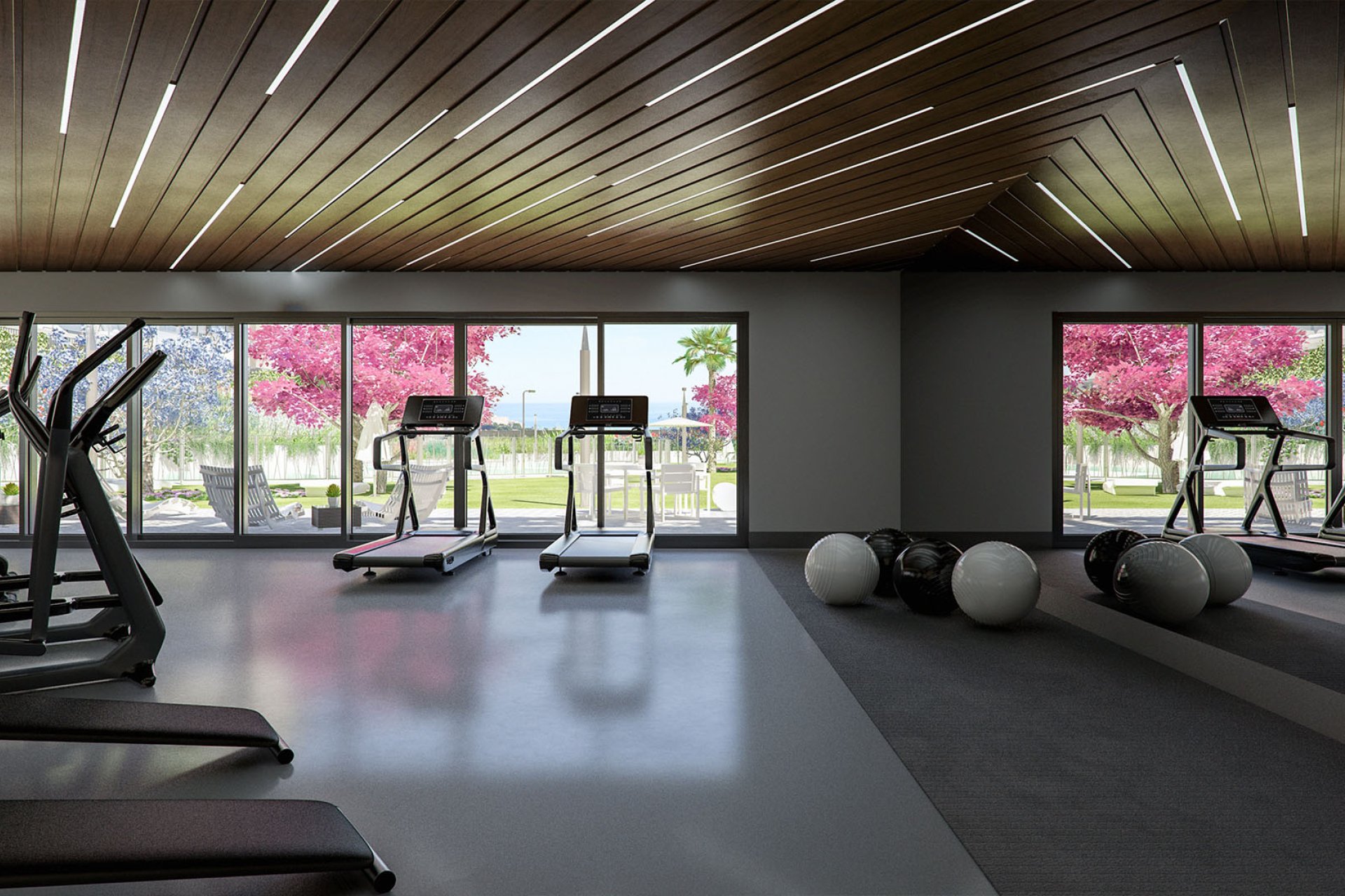 The residential complex features spacious common areas including community gardens, a communal pool, and a gym, offering spaces for leisure and well-being. Children can enjoy a playground, while adults have access to a community garage and parking, with the option for electric car charging. These facilities are designed to promote an active and social lifestyle among residents.